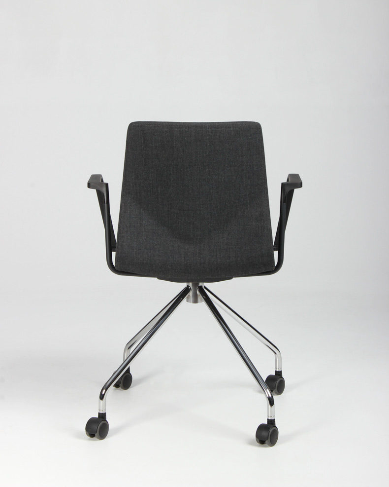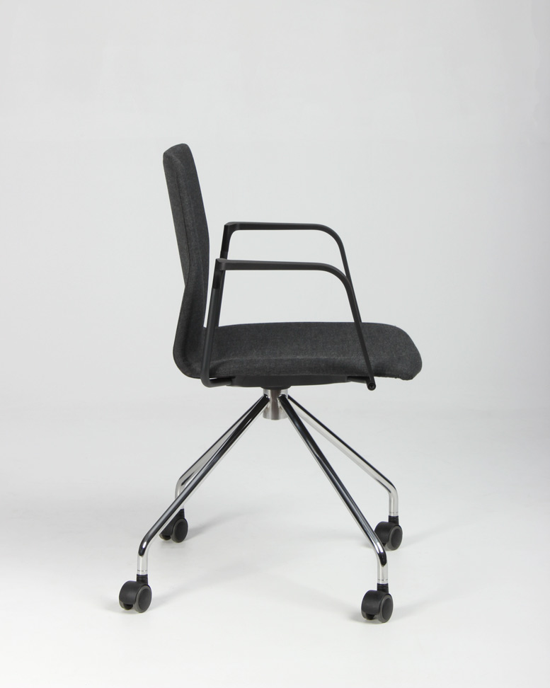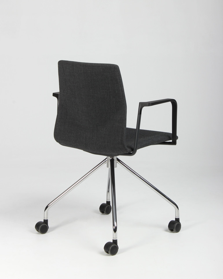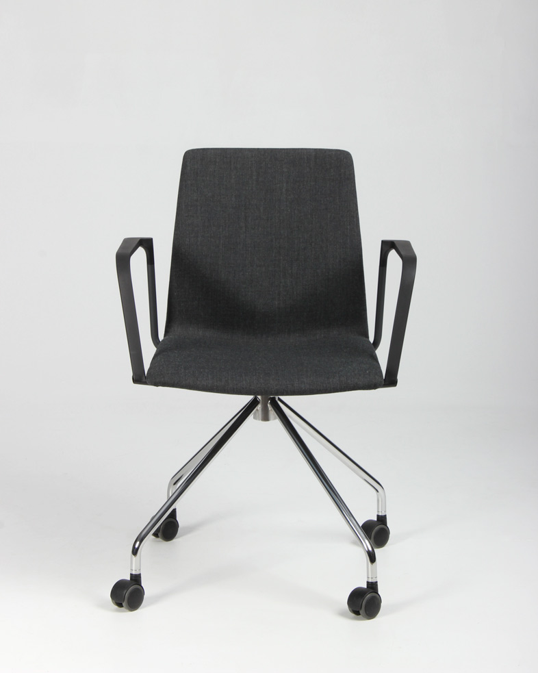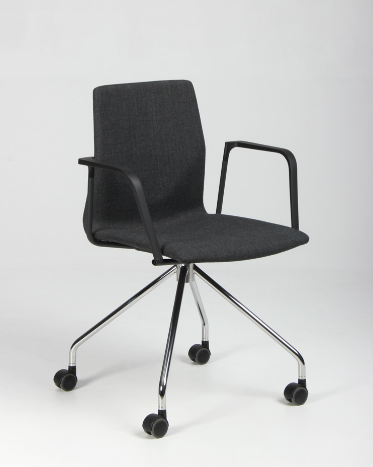 "Four Design FourSure 11 konferencestol betrukket med gråmeleret remix, sorte armlæn og krom stel. Den stilfulde danskdesignede kvalitetsstol, har et let fleksibelt ryglæn der sammen med armlæn og sædepolstring, yder en god siddekomfort og gør den perfekt til lange møder omkring konferencebordet.