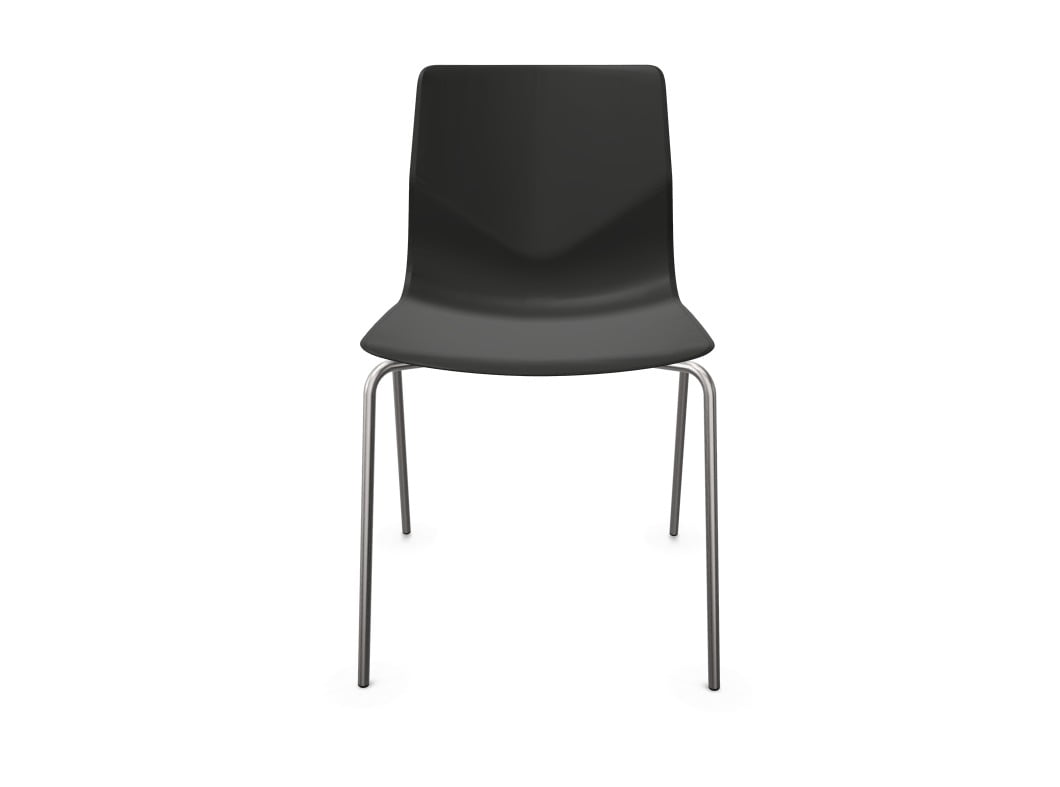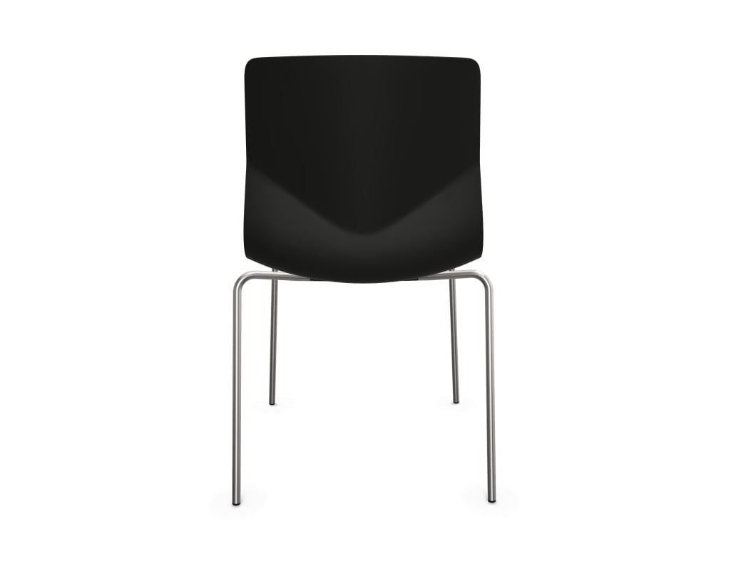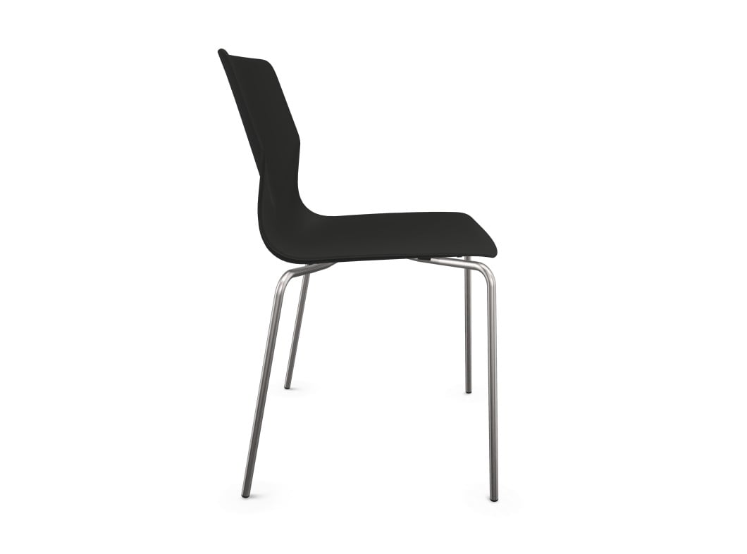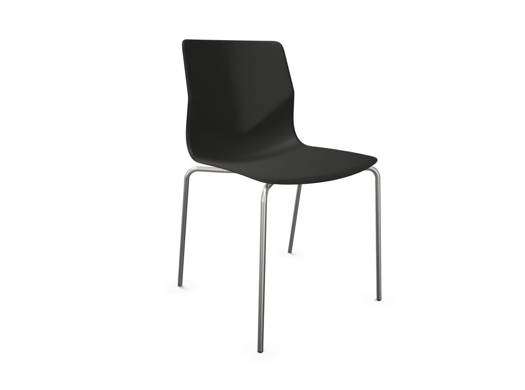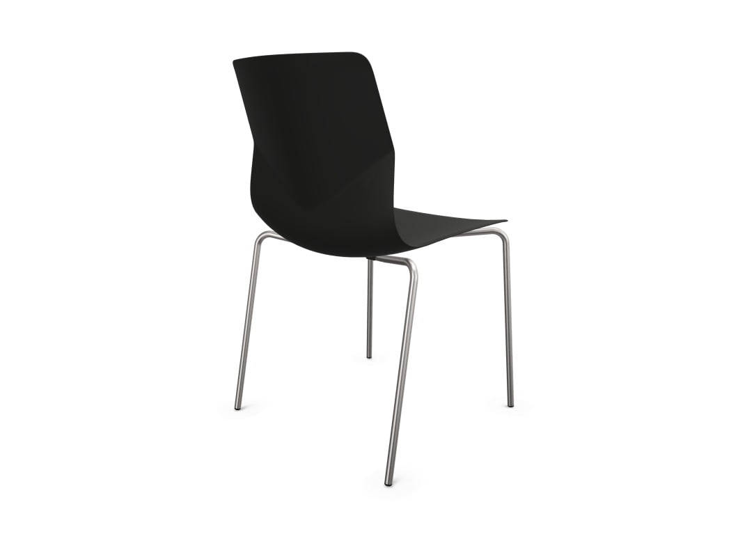 "Four Design model FourSure 44 kantinestol med skal i formstøbt sort polypropylen og ben i blankforkromet stål.