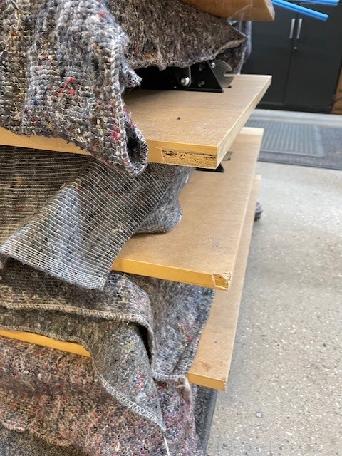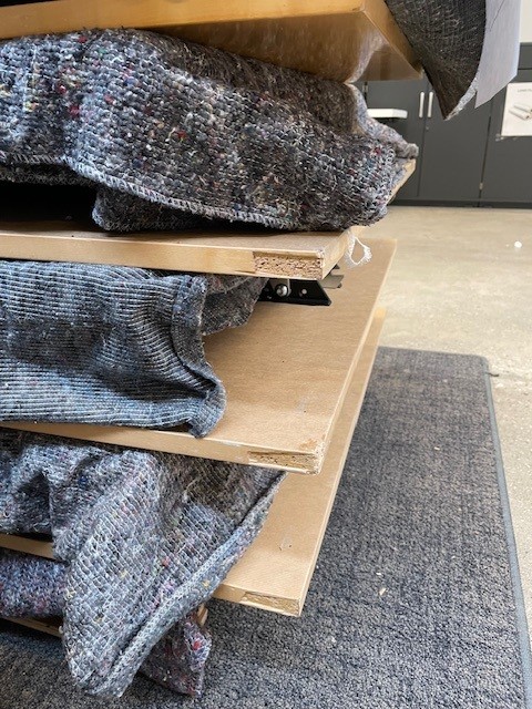 OBS! Resterende beholdning fremstår med skadede plastkanter og brugsspor (se fotos). Dog anvendeligt som fx. arbejdsbord eller skjult af dug – fuldt ud funktionelt.