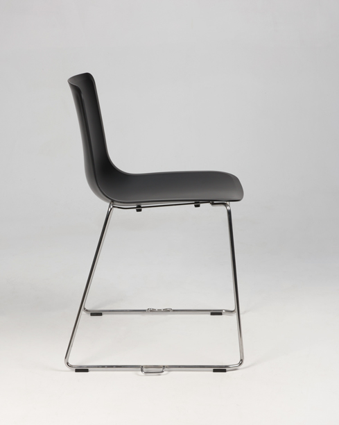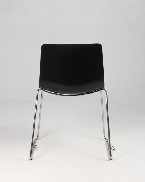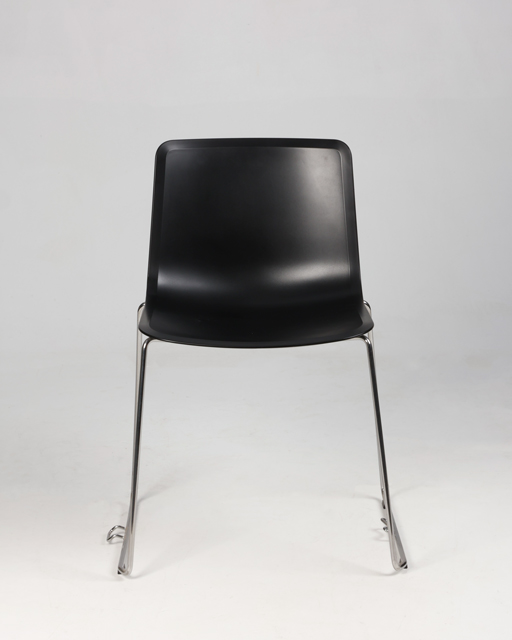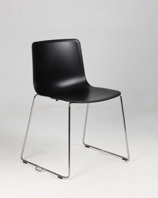 "Fredericia Furniture model Pato stabelbar kantinestol med skal i sort formstøbt polypropylen og krom medestel.