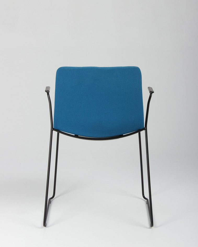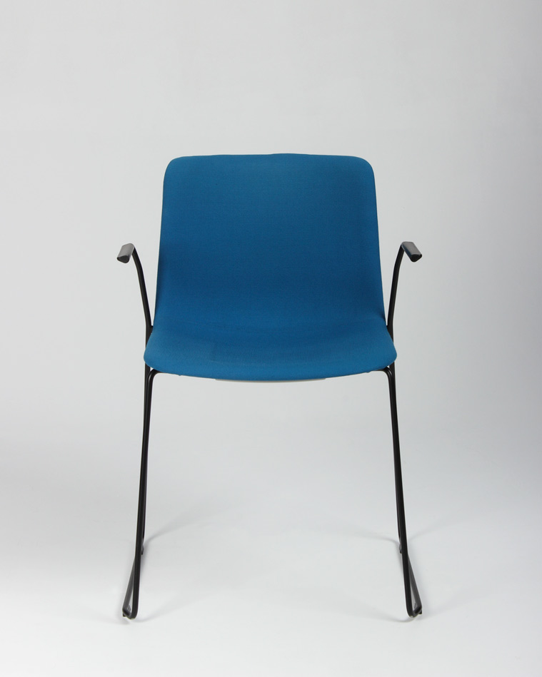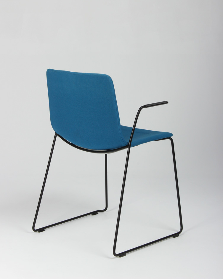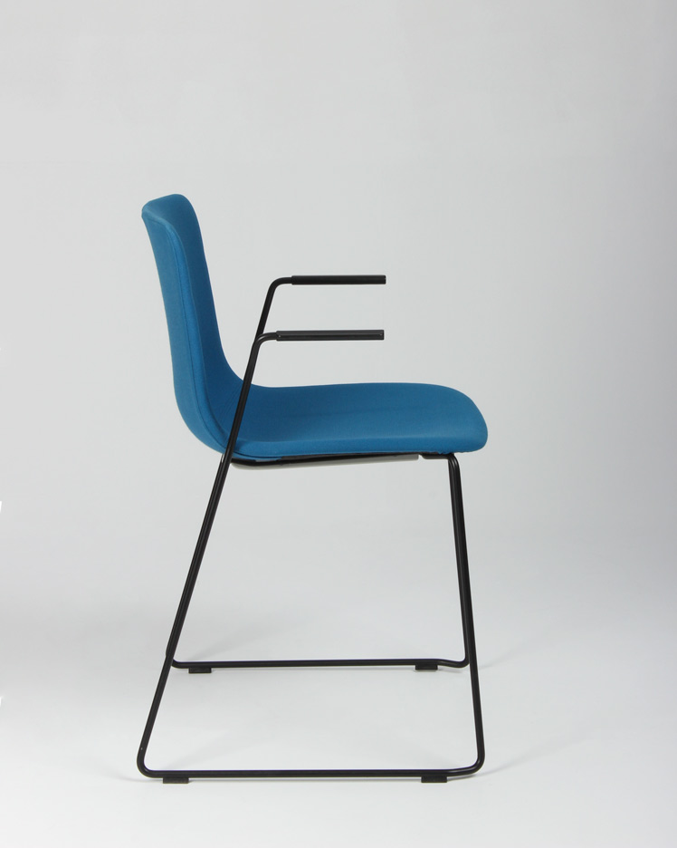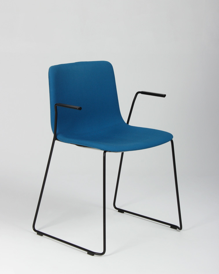 "Flot, moderne Pato Sledge konferencestol med armlæn og sort stel fra Fredericia Furniture. Stolen er betrukket i fame – et slidstærkt møbeltekstil med højt indhold af uld. Stolen kan både stables og hænges op på bordkanten i armlænene, så det er nemt at komme til under bordet i forbindelse med rengøring.