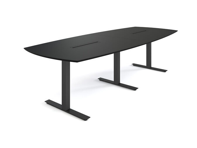 "Stilrent konferencebord på 320 x 110/90 cm, der har plads til ca. 10 personer, afhængigt af stolebredde. Bordplade i det naturlige materiale linoleum der har en mat overflade, og giver et moderne og professionelt udtryk. Kernen i bordpladen er fremstillet af solid MDF, hvilket sikrer langvarig holdbarhed. Den affasede bordkant giver bordet et let og luftigt udseende, og den praktiske pladetykkelse på 22 mm gør det både robust og funktionelt. Bordet er FSC-certificeret, hvilket betyder, at det er fremstillet af træ fra bæredygtige kilder. Perfekt til møder og konferencer, hvor både stil og kvalitet er i fokus.
