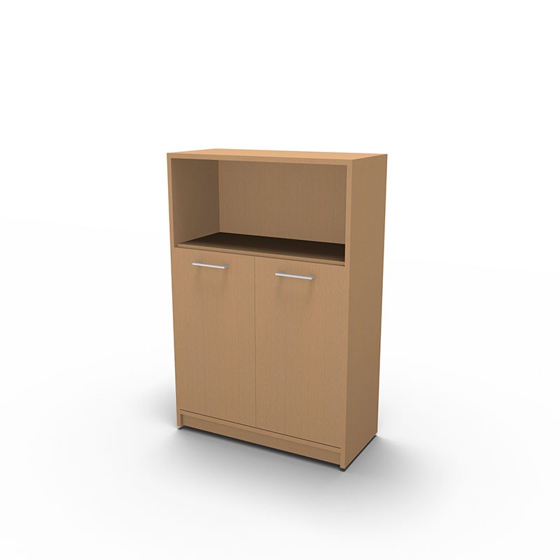 "Skabsreol i modellen JIVE fra FUMAC med to låger og et lukket rum. Med JIVE serien kan du konfigurere din reol præcis som du vil have den hvad angår farve, materiale, mål osv. Det er ligeledes muligt at tilvælge sokkel/hjul eller lås.