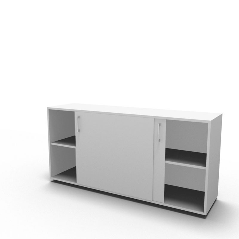 "Elegant skab med skydelåger i målene H: 81,4 x B: 160 x D: 42 cm. Skabet er især funktionelt på mindre kontorer hvor der ikke er så meget plads til at have almindelig skabslåger til at stå åbent.