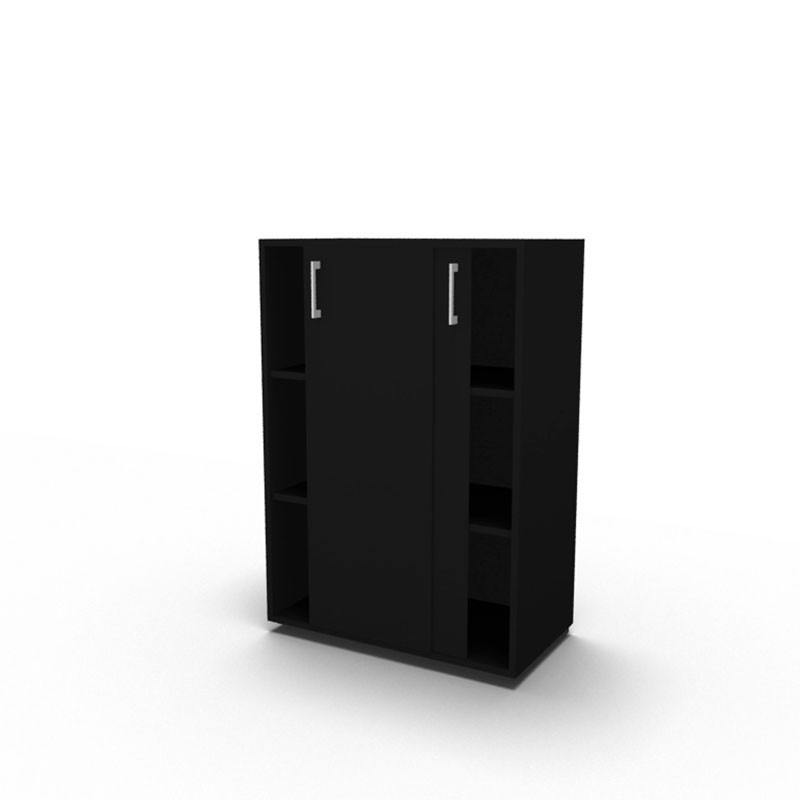 "Elegant skab med skydelåger i målene H: 113 x B: 78 x D: 42 cm. Skabet er især funktionelt på mindre kontorer hvor der ikke er så meget plads til at have almindelig skabslåger til at stå åbent.
