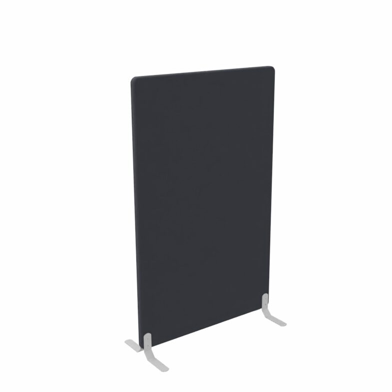 "ScreenIT A30 gulvskærm (uden fødder) i antracitgrå Event Screen+ tekstil. Praktisk afskærmningsløsning til fx store kontormiljøer hvor der arbejder mange i samme rum. Skillevæggen er med til at danne rum i rummet, forbedre akustikken og fungerer desuden som opslagstavle. A30 er bygget med en indre træramme som danner den grundlæggende form. Heri 30 mm lydabsorberende skum, og til sidst polstret med 5 mm skumlamineret stof på begge sider.