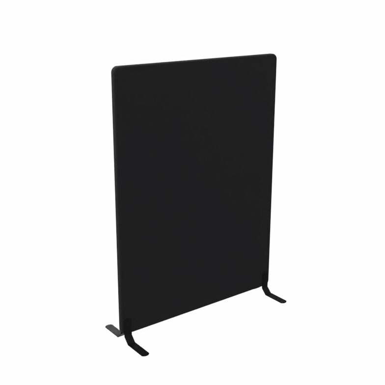 "ScreenIT A30 gulvskærm (uden fødder) i sort Event Screen+ tekstil. Praktisk afskærmningsløsning til fx store kontormiljøer hvor der arbejder mange i samme rum. Gulvskærmen er med til at danne rum i rummet, forbedre akustikken og fungerer også som opslagstavle. A30 er bygget med en indre træramme som danner den grundlæggende form. Heri 30 mm lydabsorberende skum. Skærmen er til sidst polstret med 5 mm skumlamineret stof på begge sider.