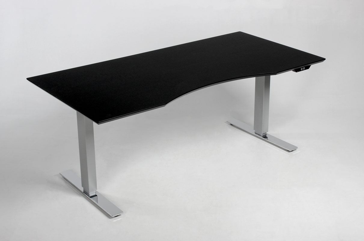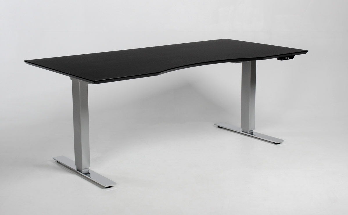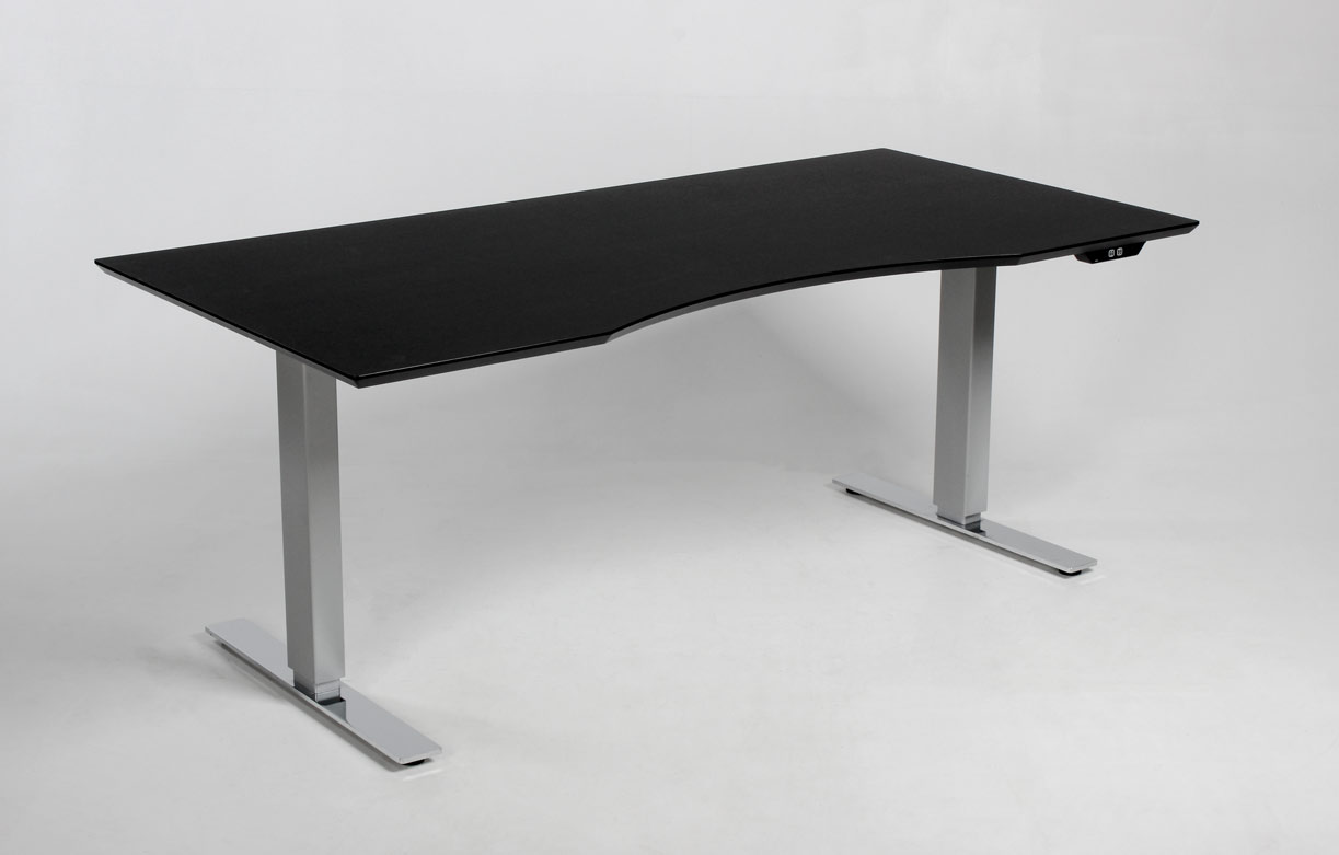 Det elegante stel har mat grå ben, krom fødder og kan justeres i højden 71-120 cm, så man kan variere sin arbejdsposition løbende, dagen igennem.