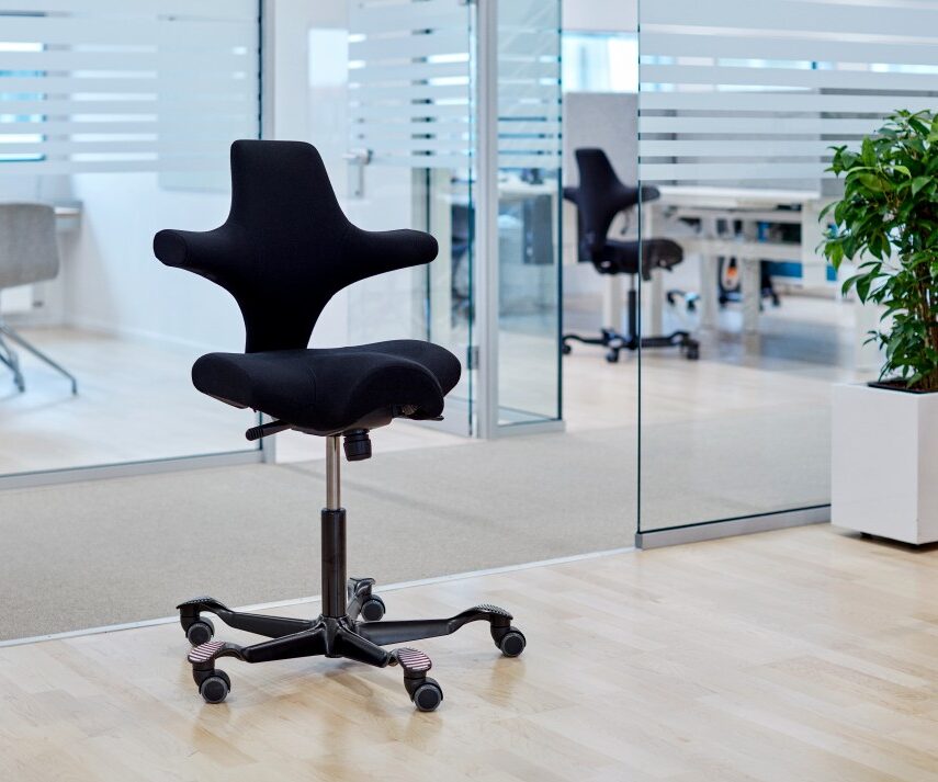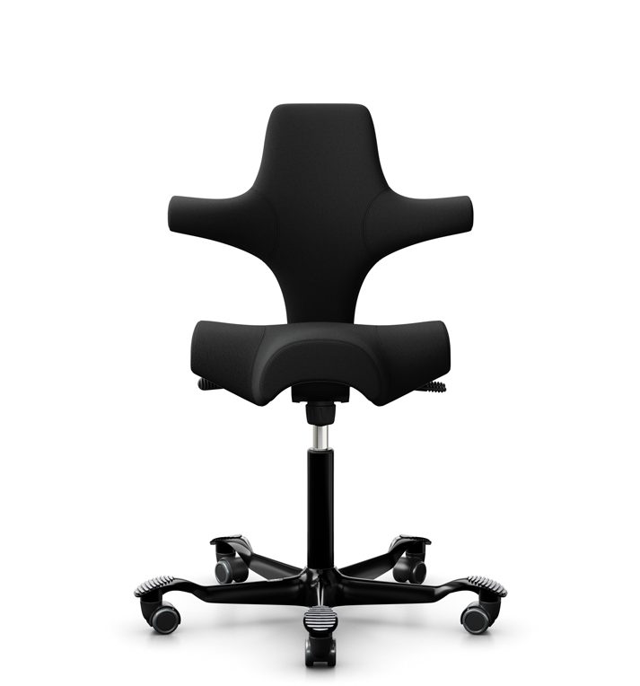 "HÅG Capisco 8106 er en ergonomisk kontorstol designet til at fremme en sund og aktiv arbejdsstilling. Stolen er kendt for sit unikke og fleksible design, der muliggør forskellige siddepositioner, afhjælper belastning af ryggen samt fremmer en god kropsholdning. Model 8106 er udgaven med sadelsæde, der hjælper med at åbne hofterne og understøtter en naturlig rygposition. Blandt de mange indstillingsmuligheder, er stolen udstyret med den unikke HÅG inBalance® teknologi, der følger kroppen i en mere naturlig og bevægelig stilling, hvilket øger komfort og forbedrer arbejdsstillingen – særligt ved længere tids brug. HÅG inBalance® sker bl.a. ved hjælp af vægtreguleringsfunktionen, der nemt indstilles for et mere eller mindre bevægeligt sæde, for derved at følge de skiftende siddepositioner. På den måde fremmes en mere ergonomisk siddestilling, som mindsker belastning af ryg og nakke ved at støtte kroppen i flere positioner. Norske HÅG er kendt for at lave ergonomiske møbler i allerhøjeste kvalitet. Ved køb af en kontorstol herfra, investeres både i komfort samt et langsigtet sundt helbred.