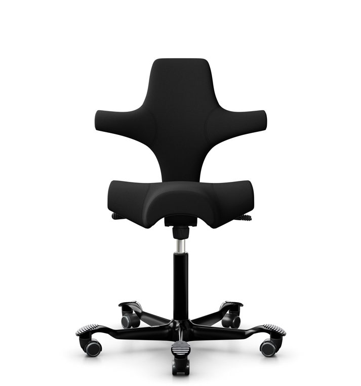 HÅG Capisco 8106 er en ergonomisk kontorstol designet til at fremme en sund og aktiv arbejdsstilling. Stolen er kendt for sit unikke og fleksible design, der muliggør forskellige siddepositioner, afhjælper belastning af ryggen samt fremmer en god kropsholdning. Model 8106 er udgaven med sadelsæde, der hjælper med at åbne hofterne og understøtter en naturlig rygposition. Blandt de mange indstillingsmuligheder, er stolen udstyret med den unikke HÅG inBalance® teknologi, der følger kroppen i en mere naturlig og bevægelig stilling, hvilket øger komfort og forbedrer arbejdsstillingen – særligt ved længere tids brug. HÅG inBalance® sker bl.a. ved hjælp af vægtreguleringsfunktionen, der nemt indstilles for et mere eller mindre bevægeligt sæde, for derved at følge de skiftende siddepositioner. På den måde fremmes en mere ergonomisk siddestilling, som mindsker belastning af ryg og nakke ved at støtte kroppen i flere positioner. Norske HÅG er kendt for at lave ergonomiske møbler i allerhøjeste kvalitet. Ved køb af en kontorstol herfra, investeres både i komfort samt et langsigtet sundt helbred.