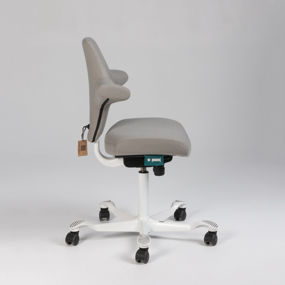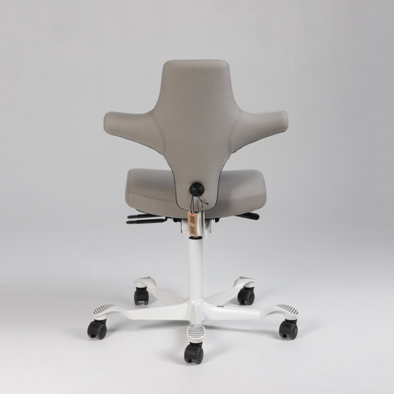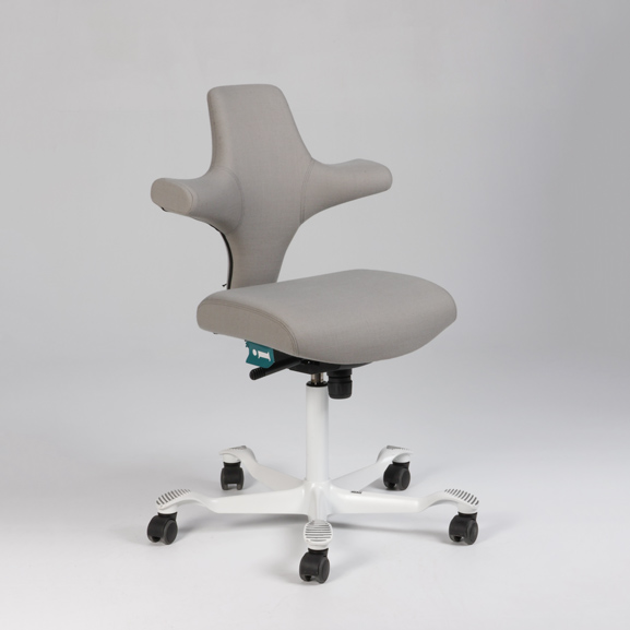 "HÅG Capisco 8126 kontorstol i beige meleret uld på hvidt aluminiumsstel.