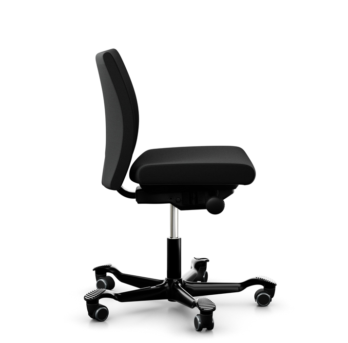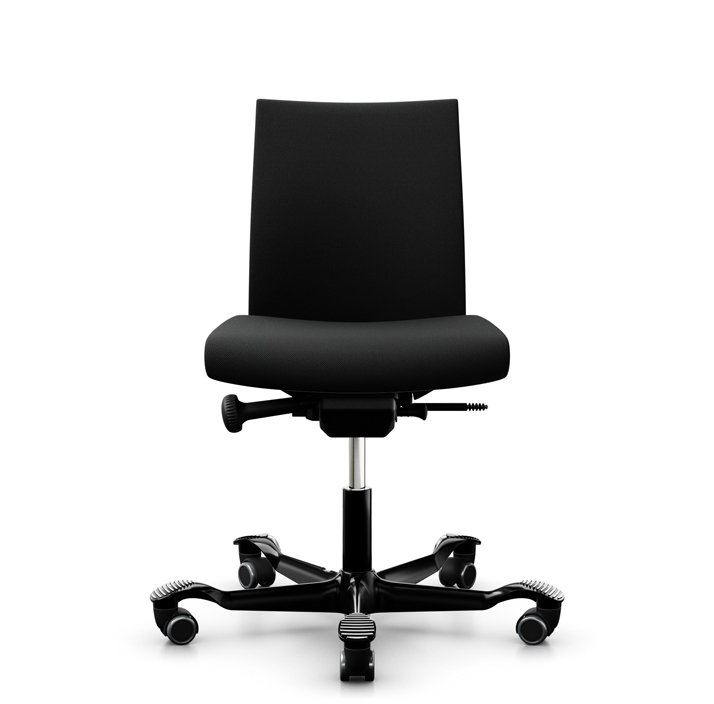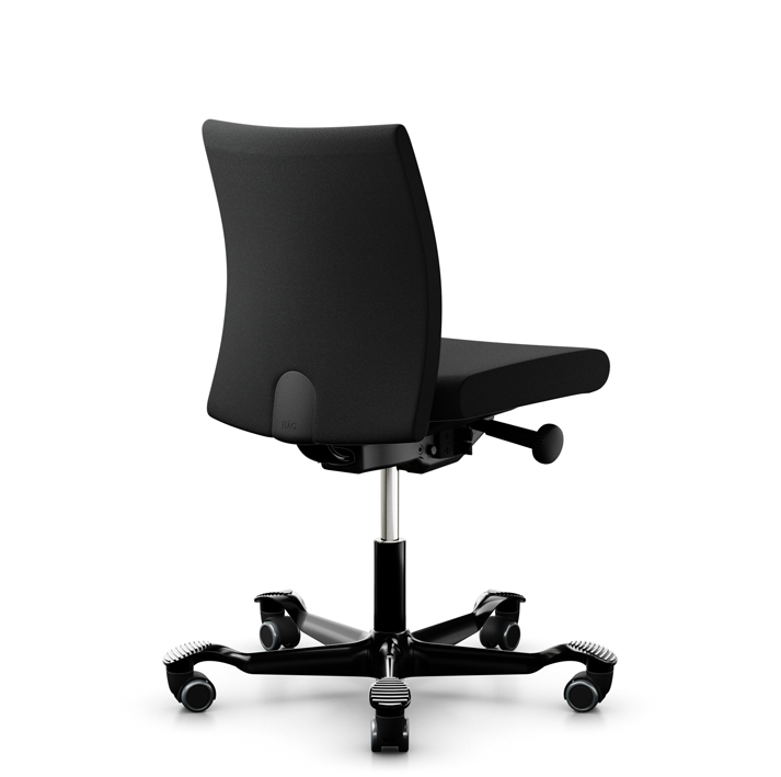 "Fabriksny HÅG Creed 6002 kontorstol med lav ryg, fuldpolstret med betræk i sort select på sort aluminiumsfodkryds.