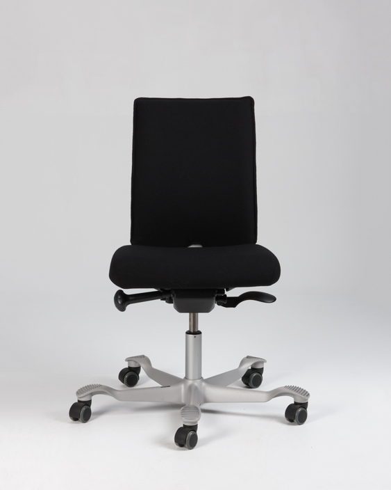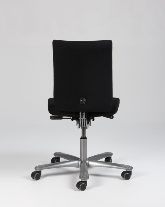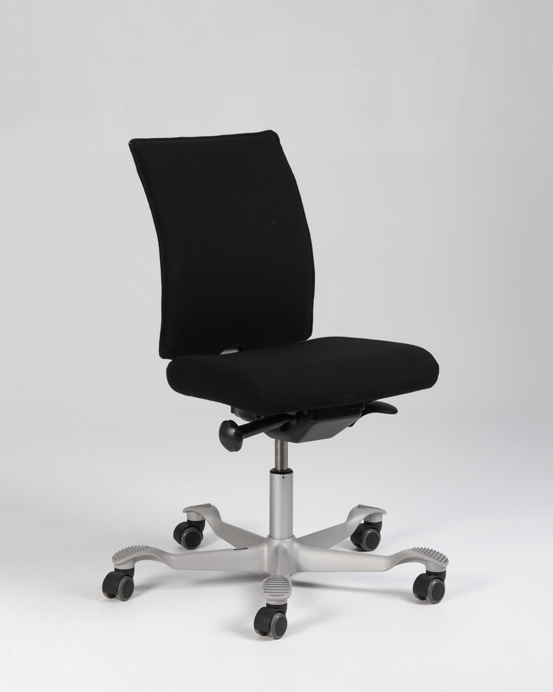 "HÅG H05 5400 kontorstol – nypolstret i sort fame. Sæde- og ryglæn bevæges synkront