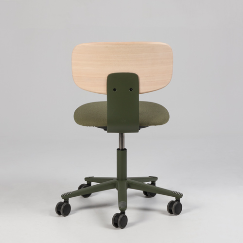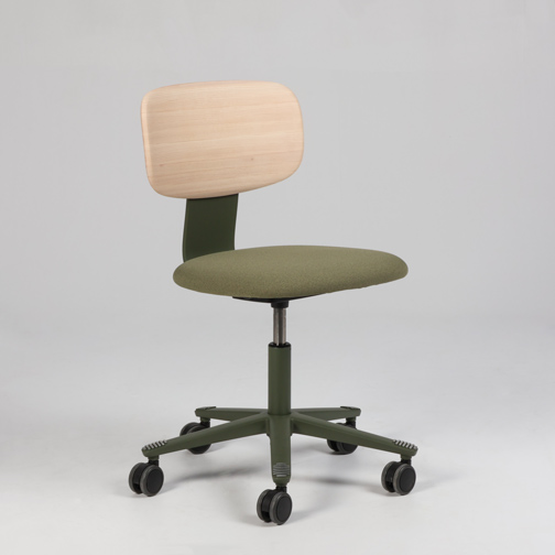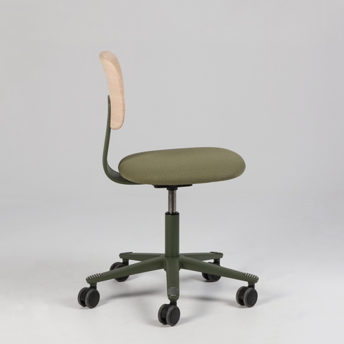 "HÅG Tion 2240 kontorstol med sædepolstring og ryglæn i lys eg og mosgrønt sæde og fodkryds.
