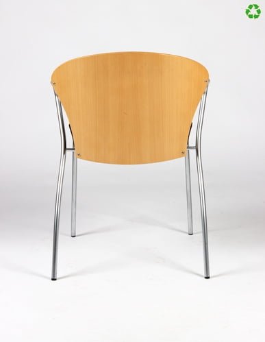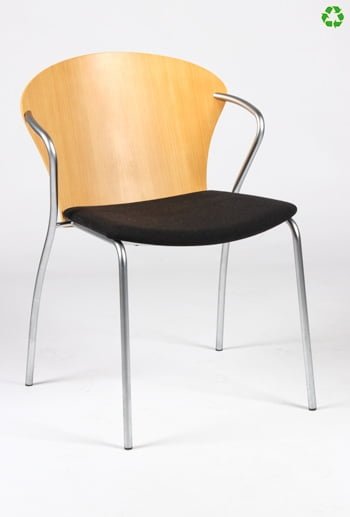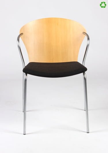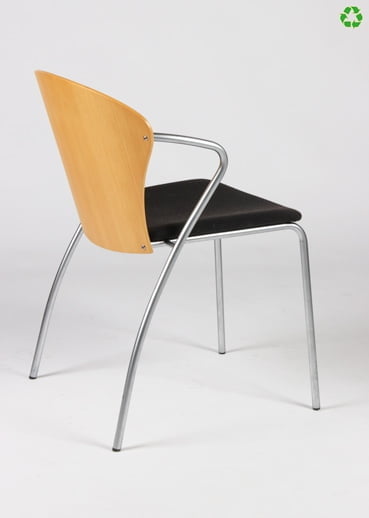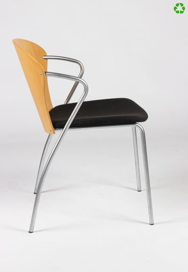 Kvalitetsstolen, produceret hos Hansen og Sørensen, er stabelbar og har armlæn og stel satinbørstet stål.
