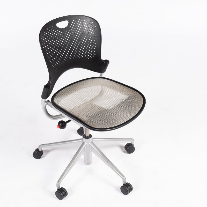 "Herman Miller model Caper kontorstol med sort plastryg og mesh sæde.