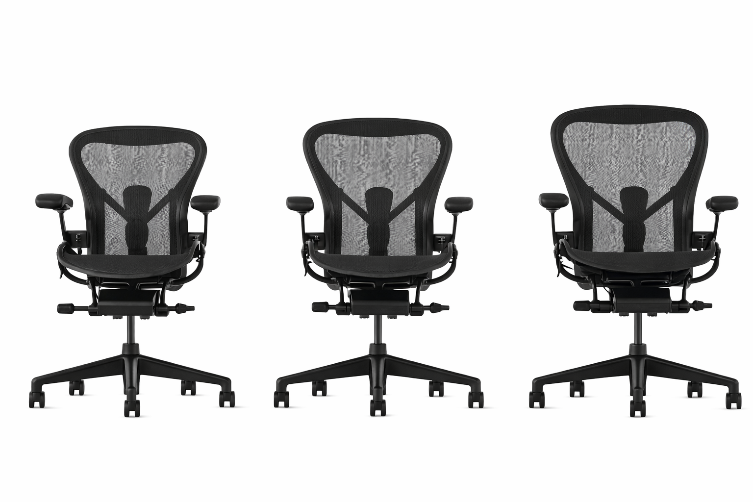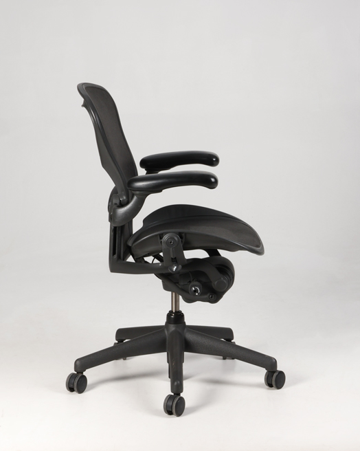 "Herman Miller Aeron Classic kontorstol i størrelse B i grafitgrå, både mesh, fodkryds og ramme.
