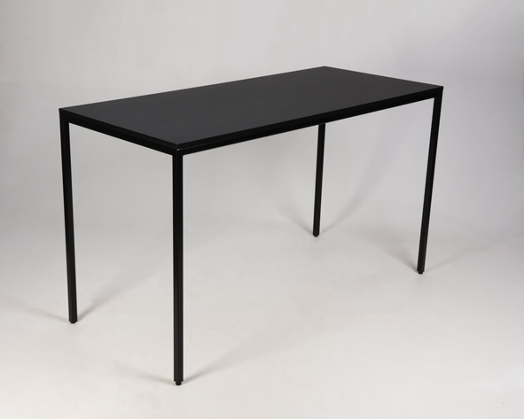 Sort højbord i linoleum med pulverlakeret sort stel med stilleskruer. Elegant og let i udtrykket, i et tidløst design, der fremstår i flot stand!