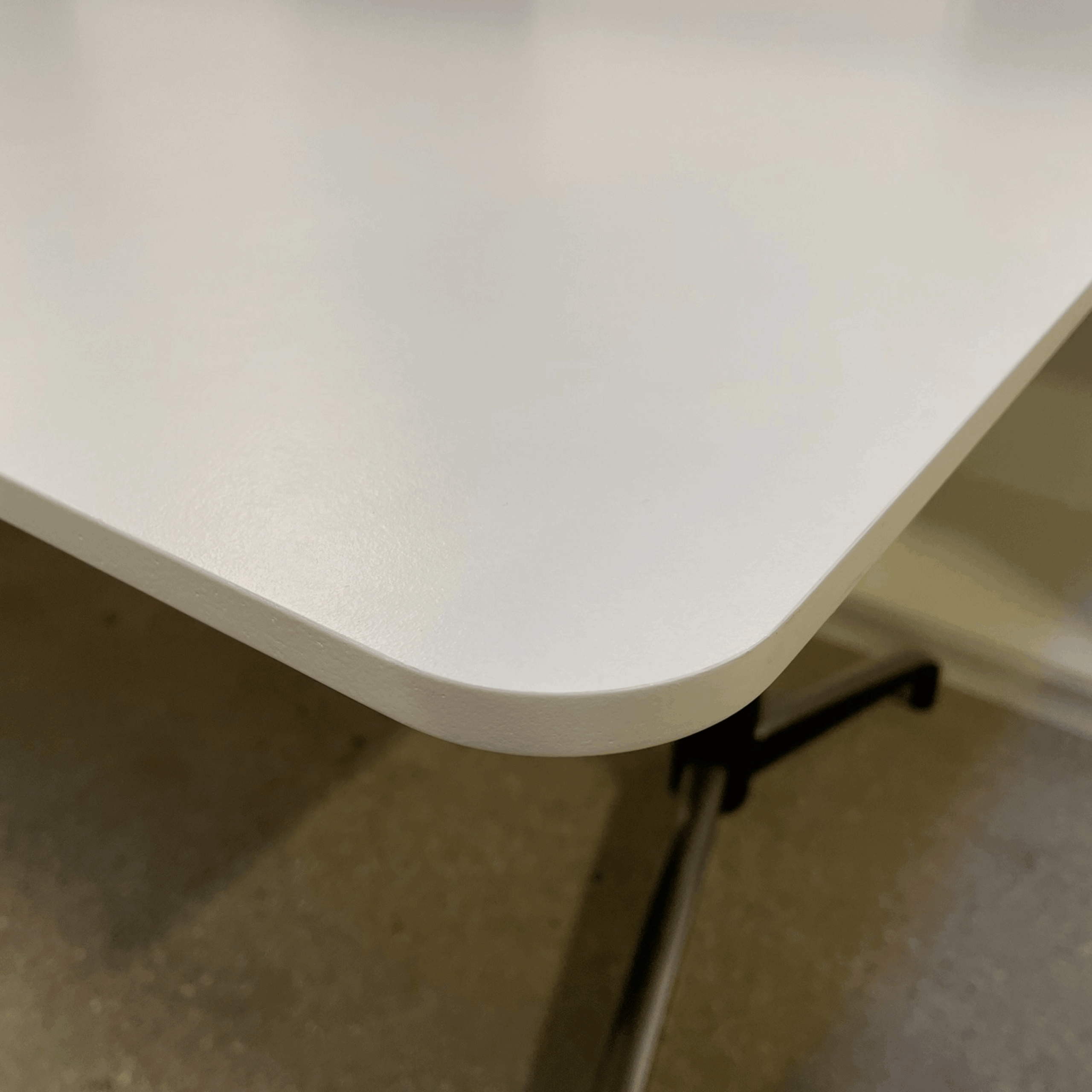 "Holmris Genese hæve sænkebord med hvid laminatbordplade med afrundede hjørner samt kabelbakke.