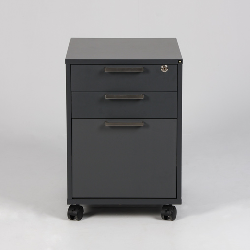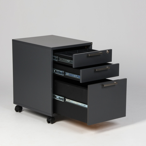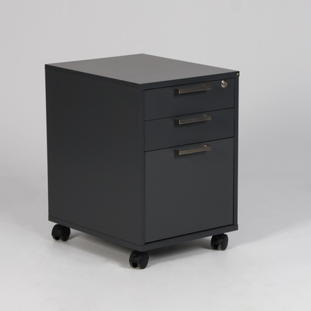 "Holmris skuffekassette på hjul i antracitgrå laminat med 3 skuffer og greb i børstet stpl.