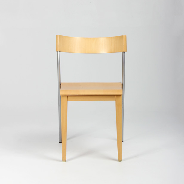 "Stabelbar IKEA mødestol i birk med gråt stel.