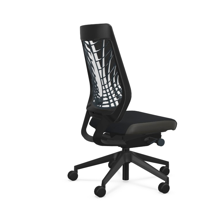 "Interstuhl JC216 i sort fra JOYCEis3-serien. JC216 er en kontorstol, der med sit design og ergonomiske funktioner, nemt tilpasser sig de ergonomiske behov. Stolen er udstyret med trinløs vægtregulering, låsbar synkronmekanisme og har sort net-ryglæn med FlexGrid.