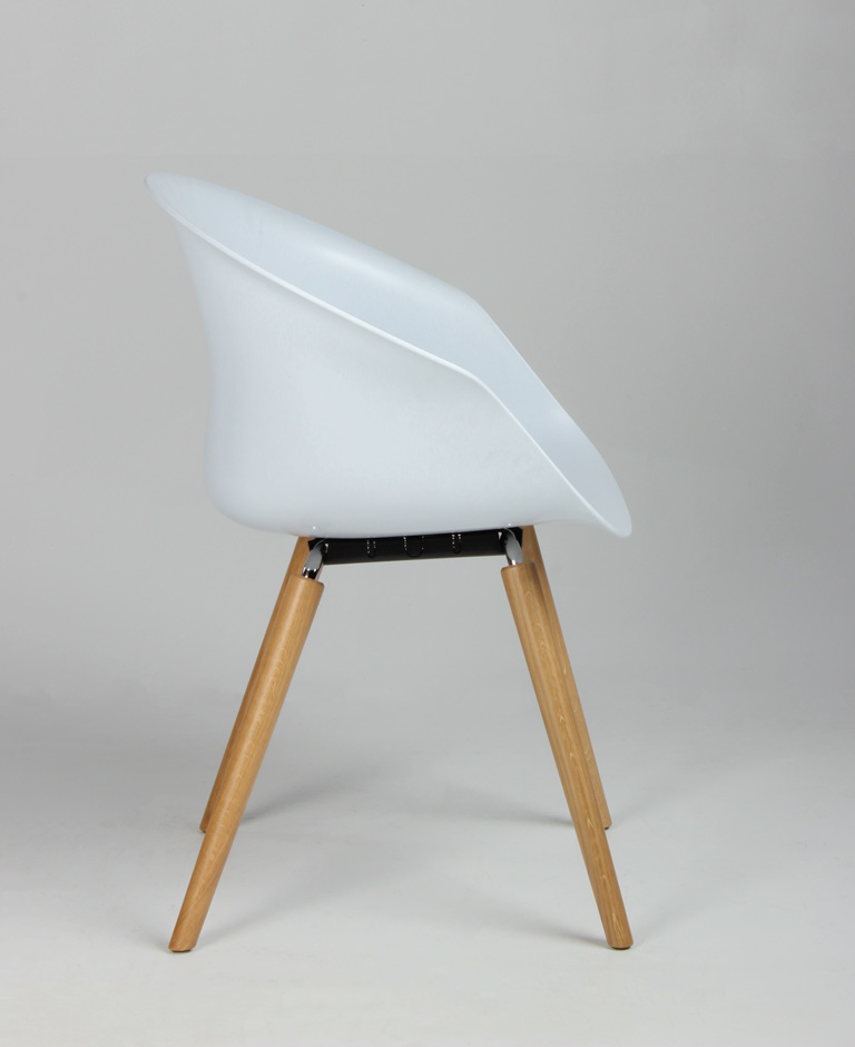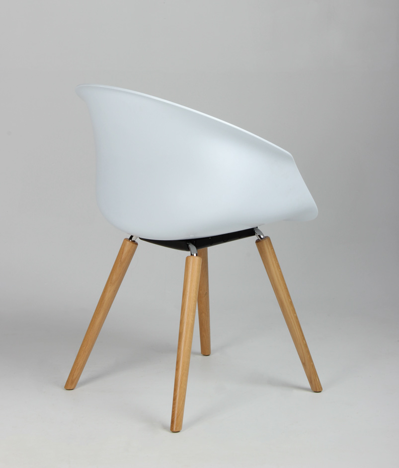 "Interstuhl Shuffle SU371 konferencestol fremstillet i hvid robust, formstøbt plast med egetræsben.