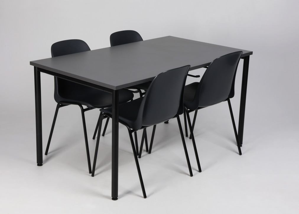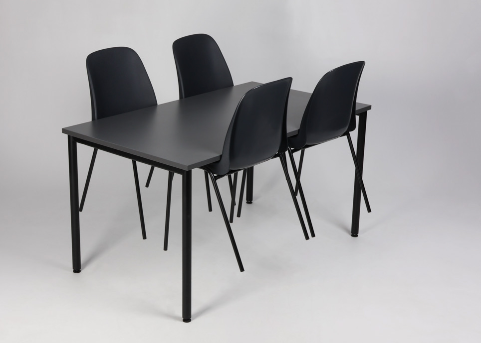 Kantinesæt til 4 personer i sort og antracitgrå, i et enkelt design af rengøringsvenlige materialer.