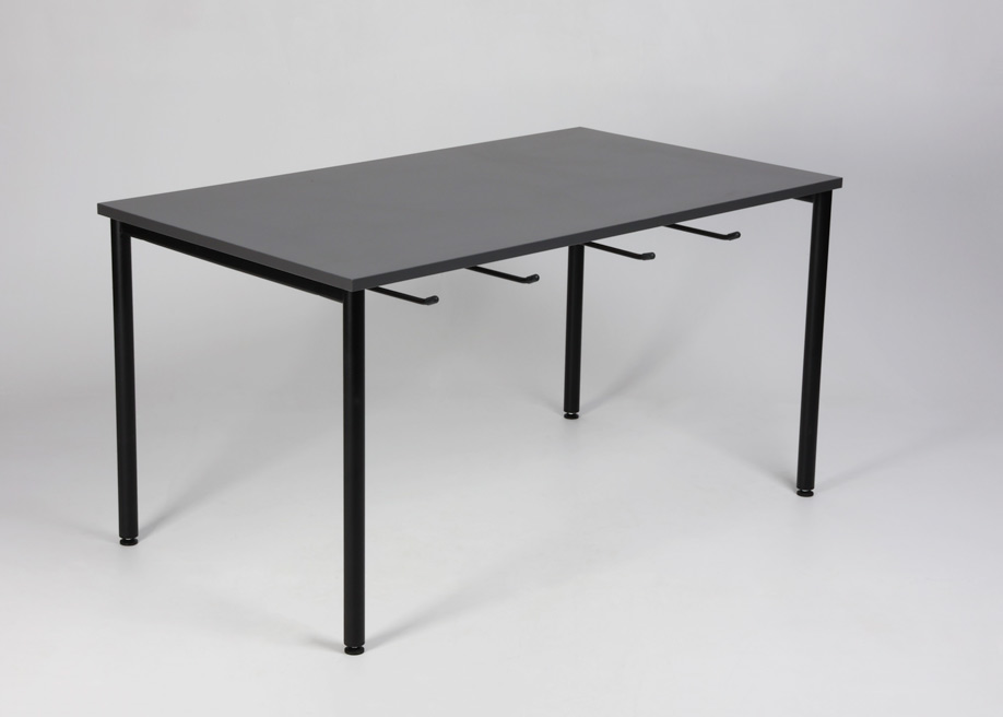 Stolene kan hænges op i stolebeslaget under bordpladen, så man nemt kan komme til ifm. rengøring.