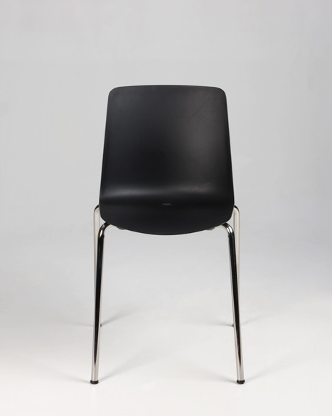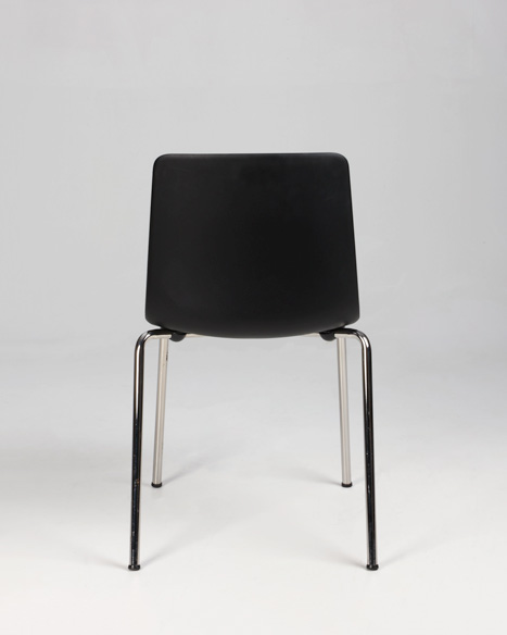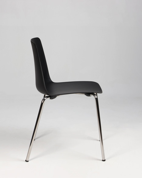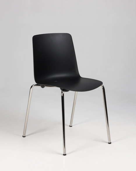 "Stabelstol i formstøbt sort polypropylen med blankforkromet stel.