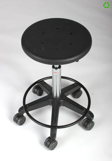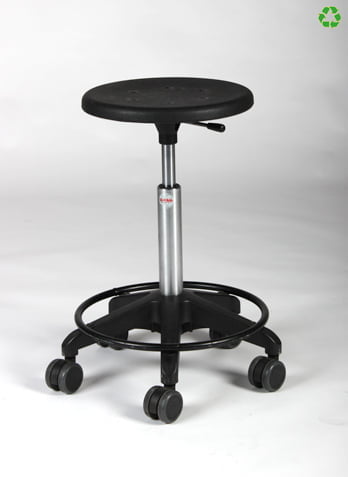 Global taburet med gaslift og fodring. Sæde af formstøbt slagfast plast.