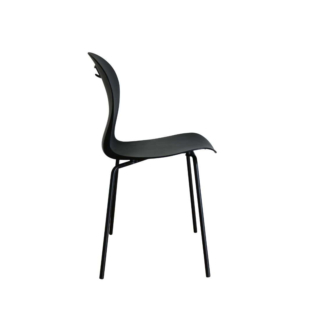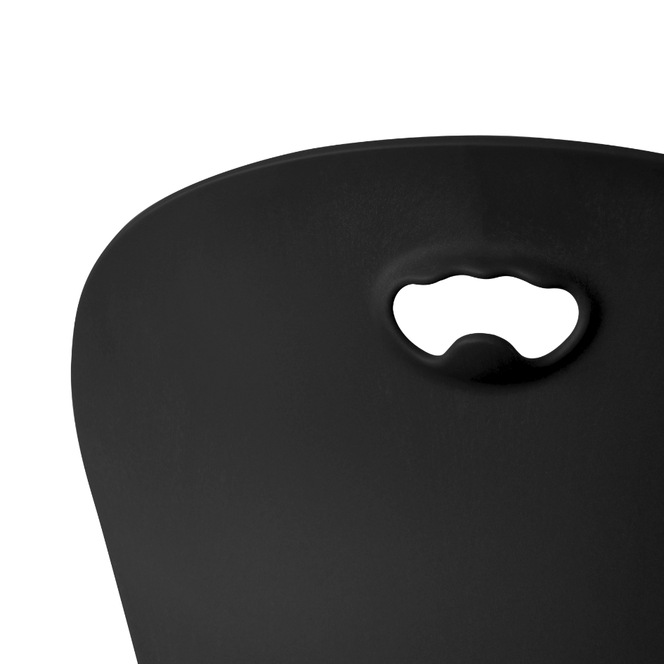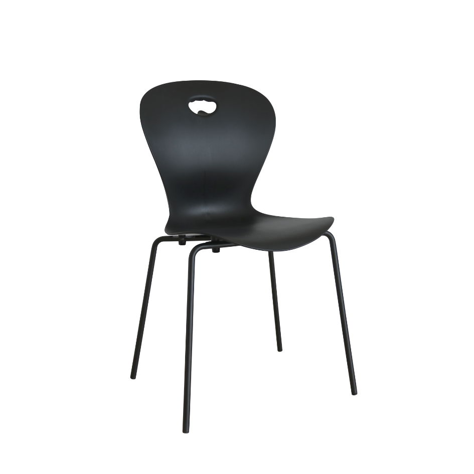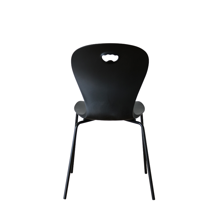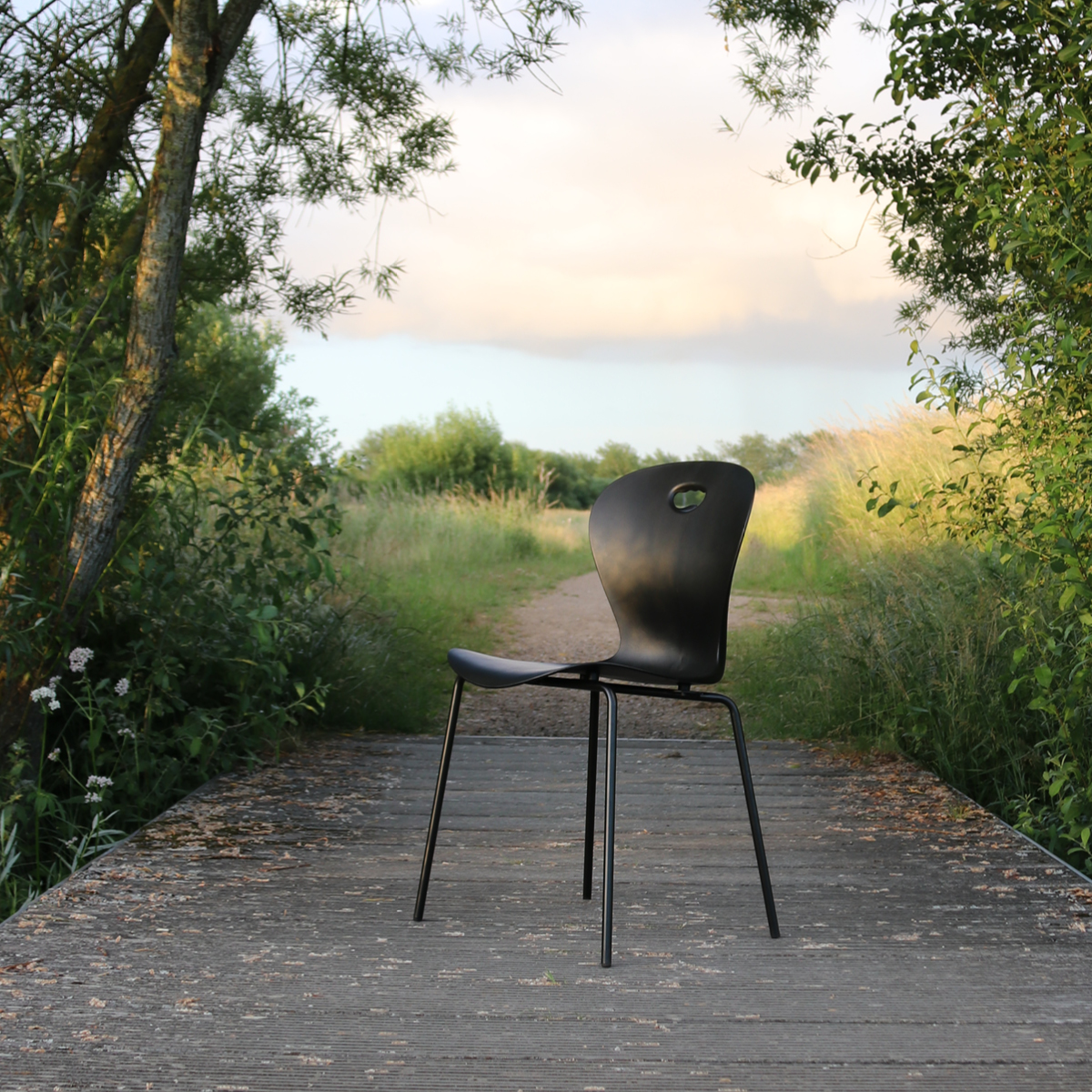 "KAROLINE skalstolen er et yderst bæredygtigt valg, ved ønske om en helt ny stol. Skallen er fremstillet i 100% genanvendt plast, der gør den til et miljøvenligt valg uden at gå på kompromis med kvalitet eller funktion. Den formstøbte plastskal har et kombineret bærehul og krog, så der kan hænges taske eller jakke bag på stoleryggen. Robust matsort stel, der med sit lette og enkle design passer i enhver indretning. Det slidstærke og rengøringsvenlige materiale, gør stolen særligt velegnet til bl.a. kantiner, frokoststuer eller til undervisningsbrug. Stolens design gør det nemt at stable flere ad gangen, så man hurtigt kan tilføje eller fjerne siddepladser efter behov.