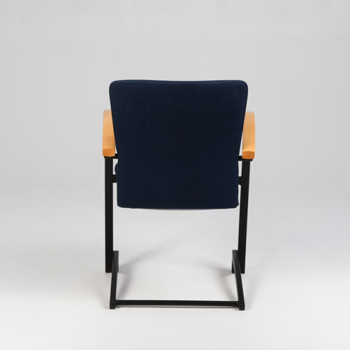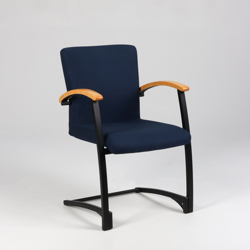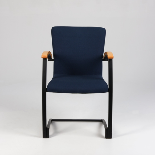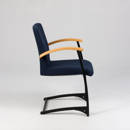 "Kinnarps Arcus konferencestol fuldpolstret og betrukket med mørkeblå xtreme og armlæn i lakeret birk.