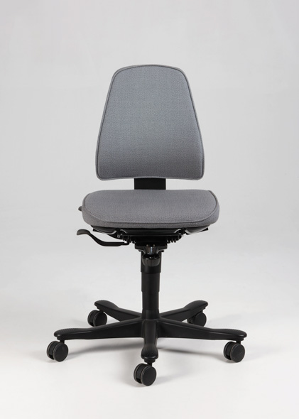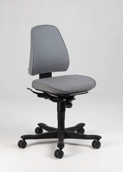 "Kinnarps Free Float 6110 kontorstol betrukket med grå polstring. Stolen er én af de mest populære på de danske kontorer, og kan indstilles til langt de fleste mennesker. Den har den såkaldte Free Float-vippefunktion, med vægtregulering og hvor kroppen ubevist holdes i bevægelse, sædet og ryglænet bevæges uafhængigt af hinanden og blandt andet giver mulighed for at låse sædehældning og ryglæn asynkront.