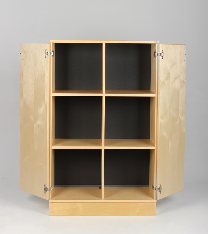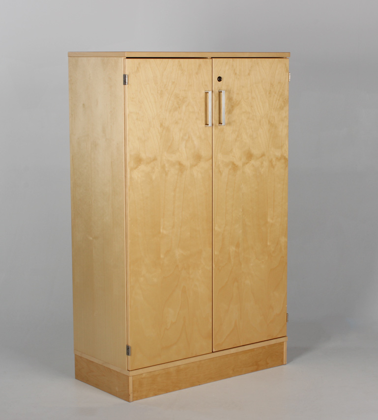 "Kinnarps skab i birk med sokkel og seks rum, i alt fire faste hylder.