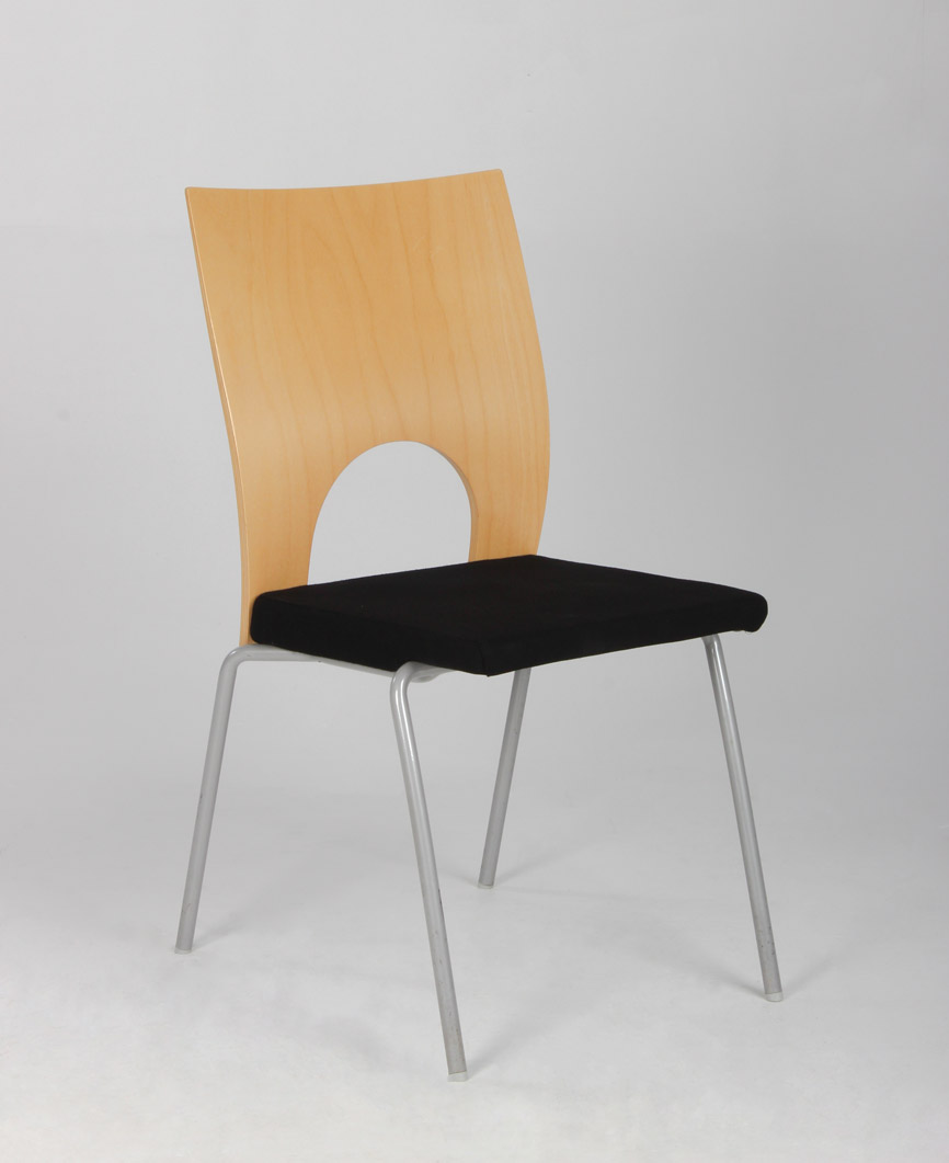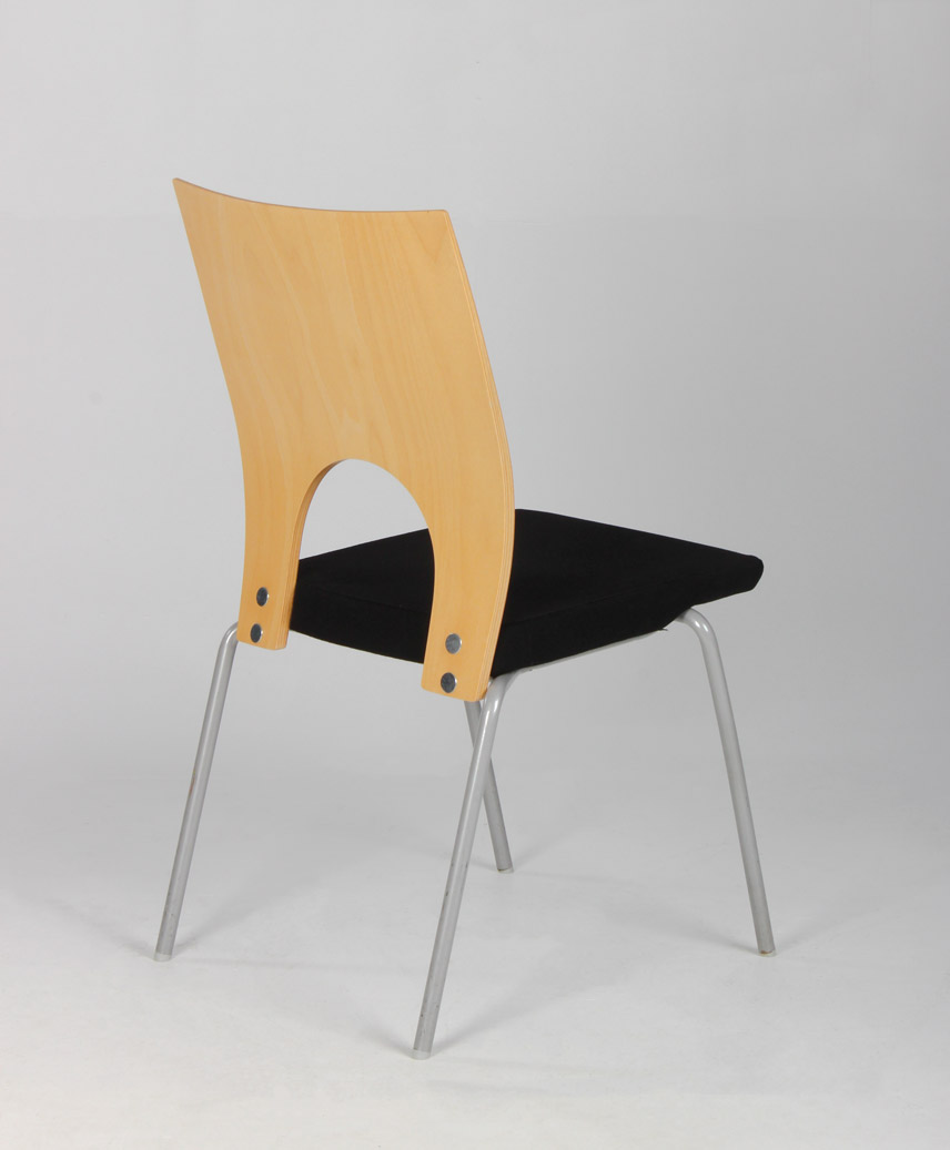 "Kinnarps Yin konference- og mødestol med sædepolstring i sort gaja og ryglæn i formbøjet, lakeret bøg.