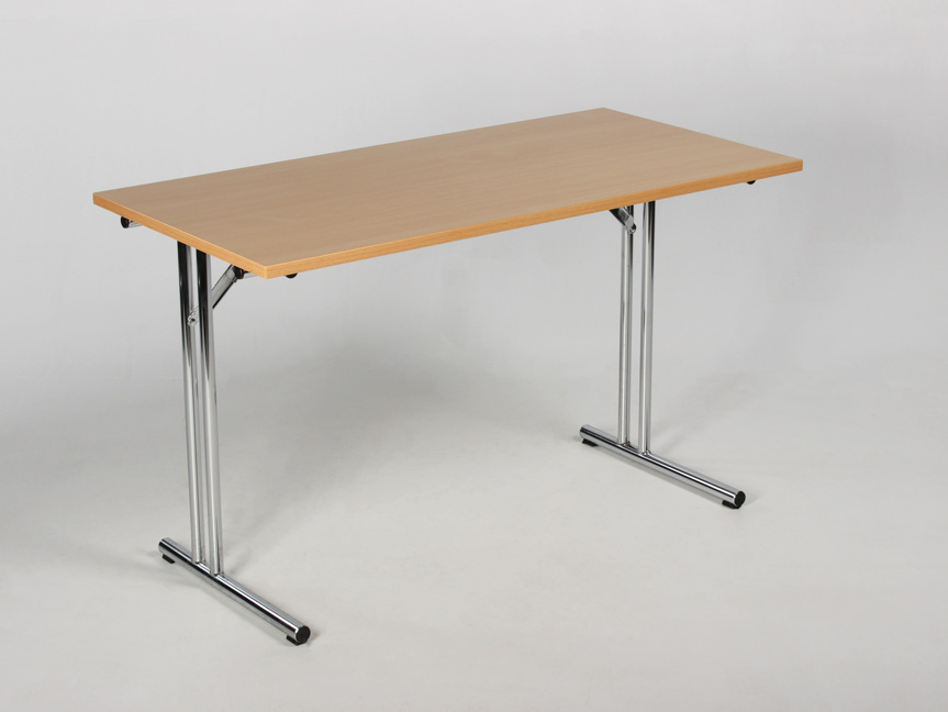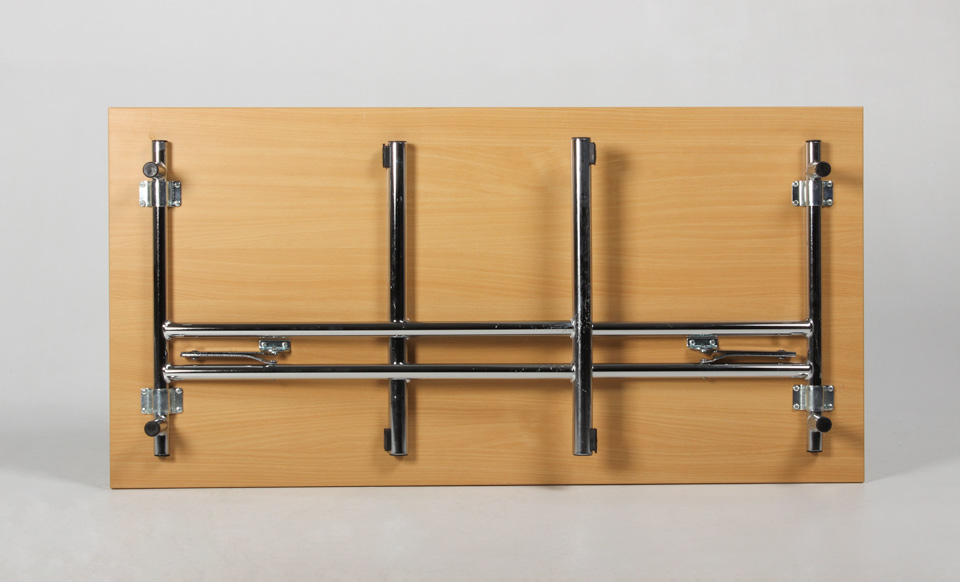 "Klapbord med bordplade i lakeret birk på blankforkromet stel.