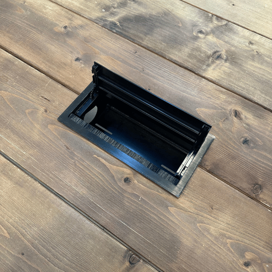 Bordet har to praktiske kabellemme, der gør det nemt at samle og skjule strømforsyning, kabler og opladere.
