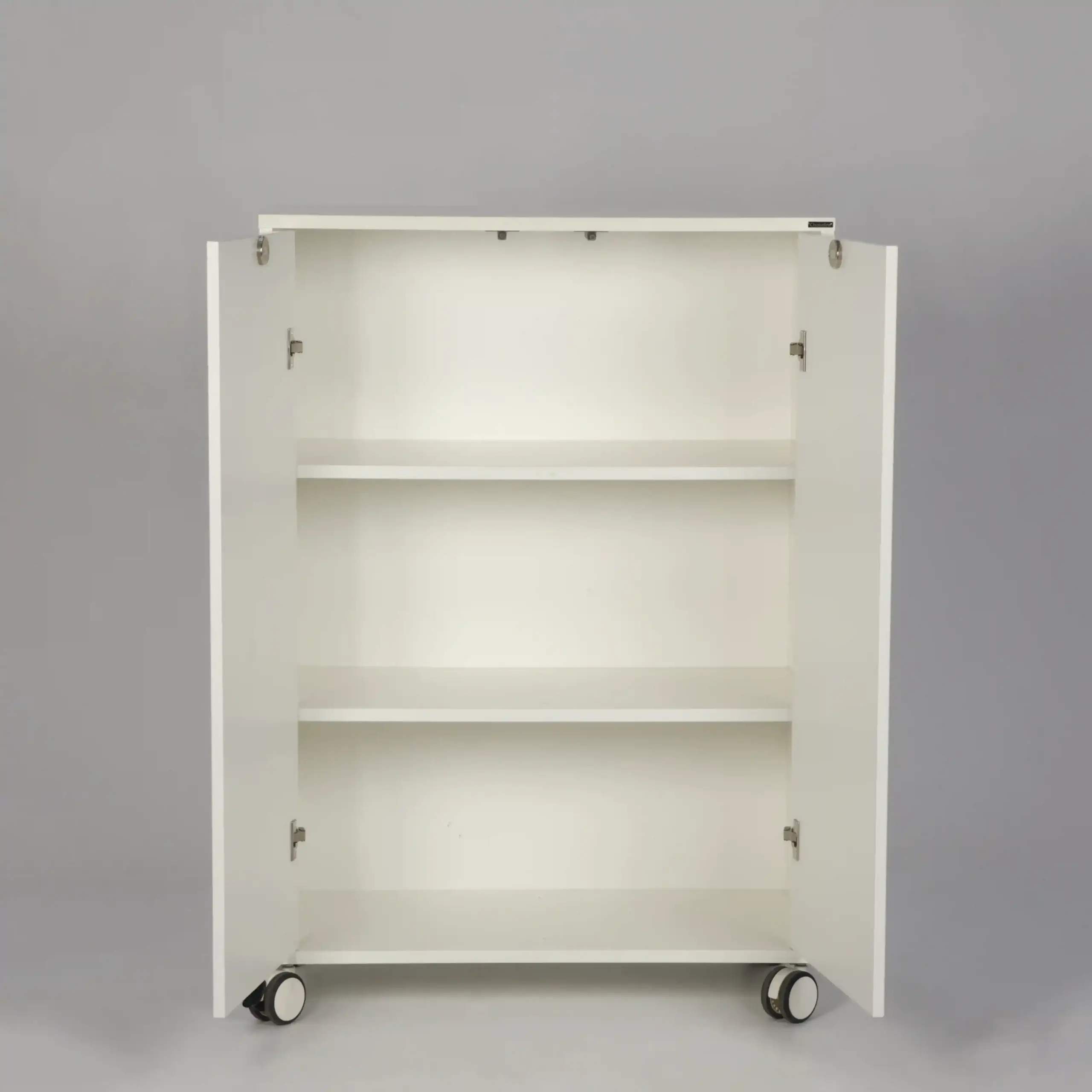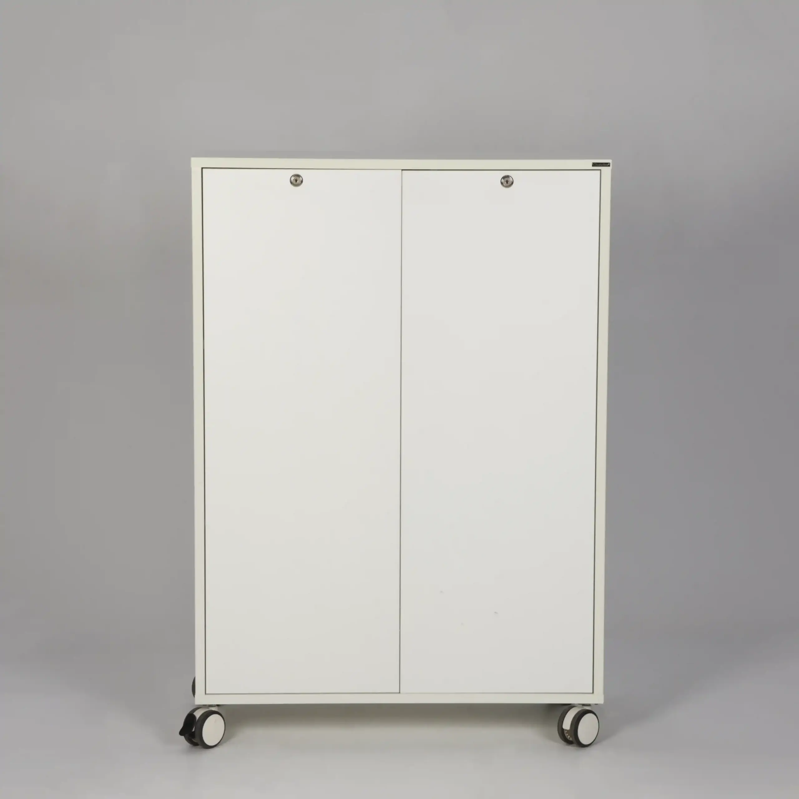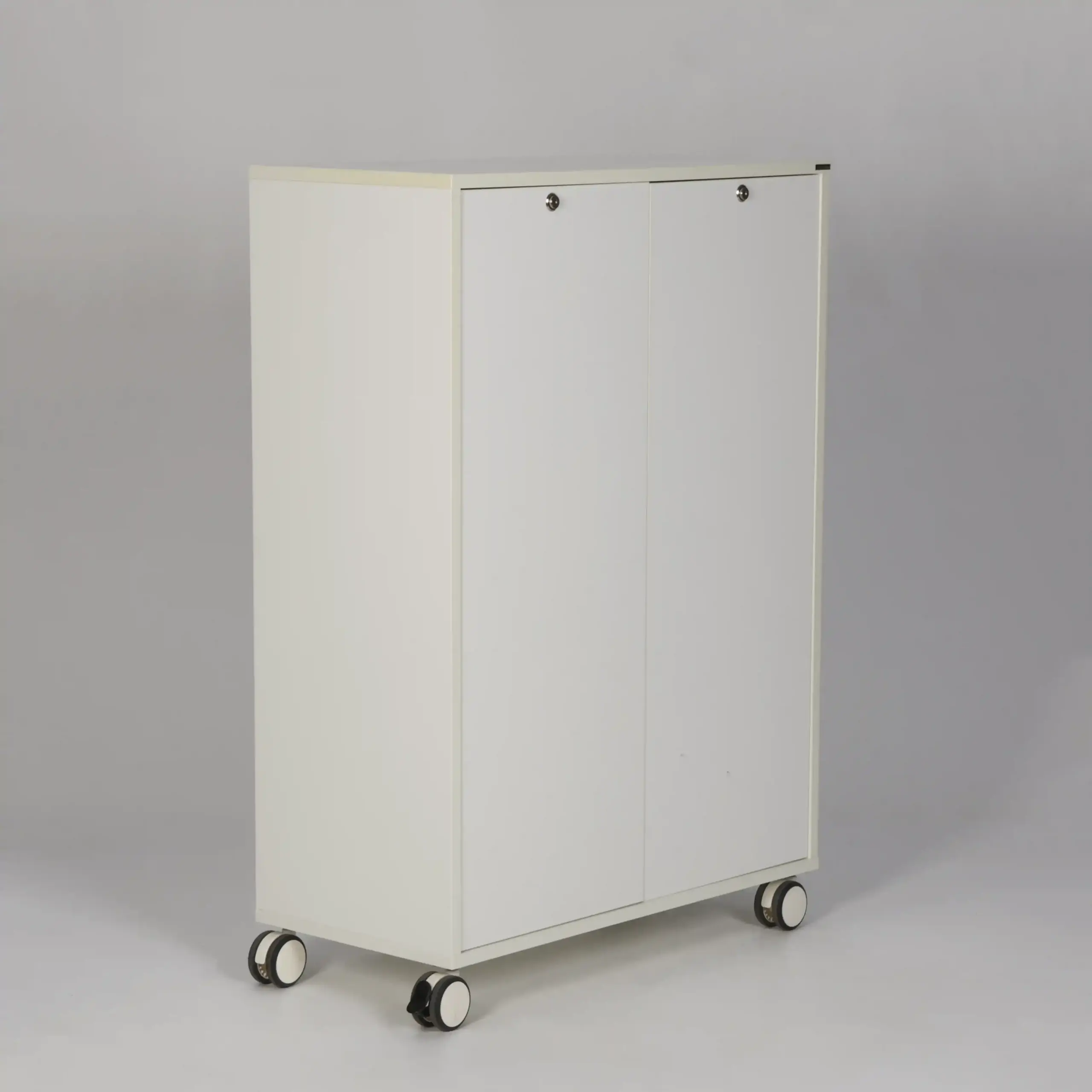 Kontorskab med to push-låger og låsbare gummibanehjul.