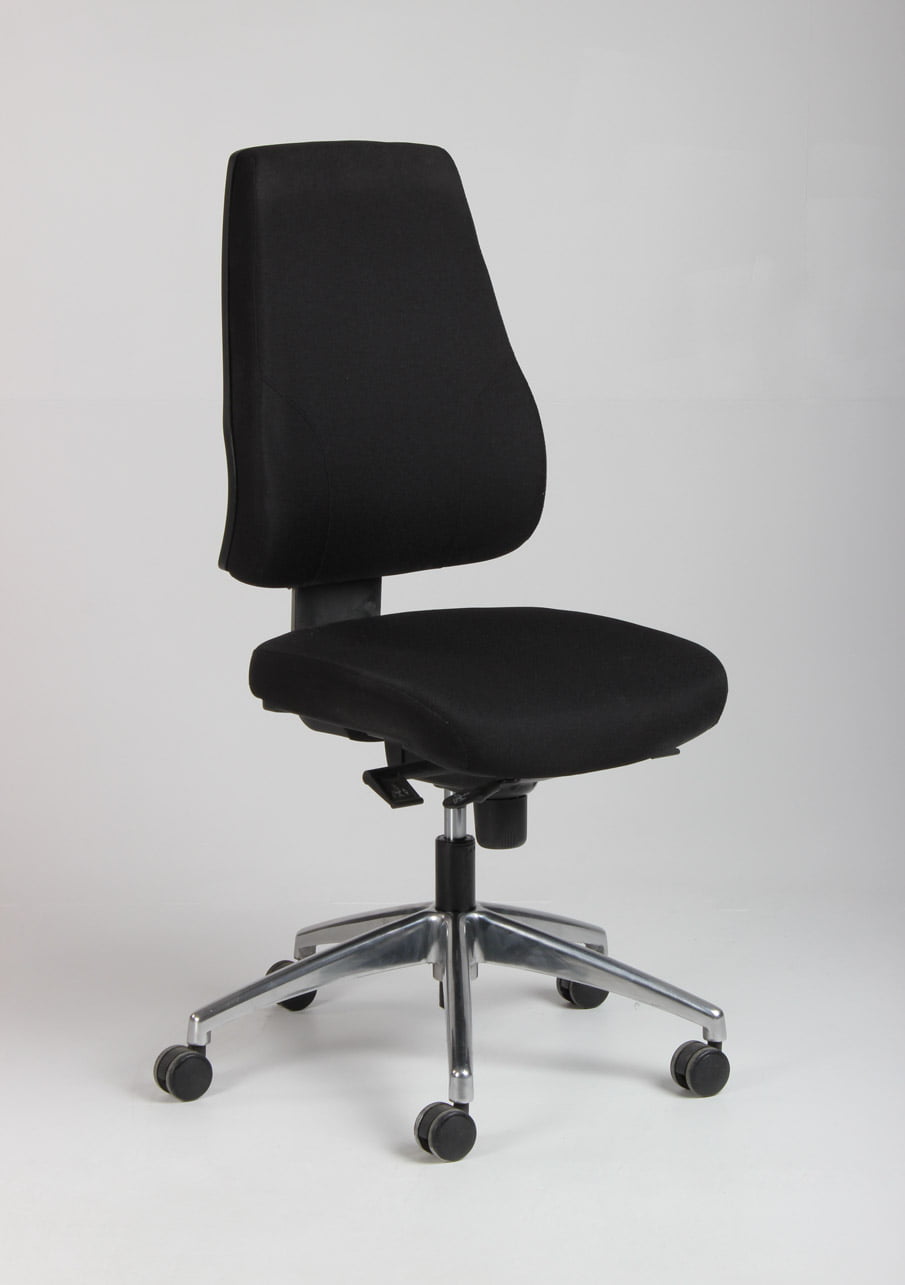 Kontorstol i sort xtreme med høj ryg og fodkryds i poleret stål.