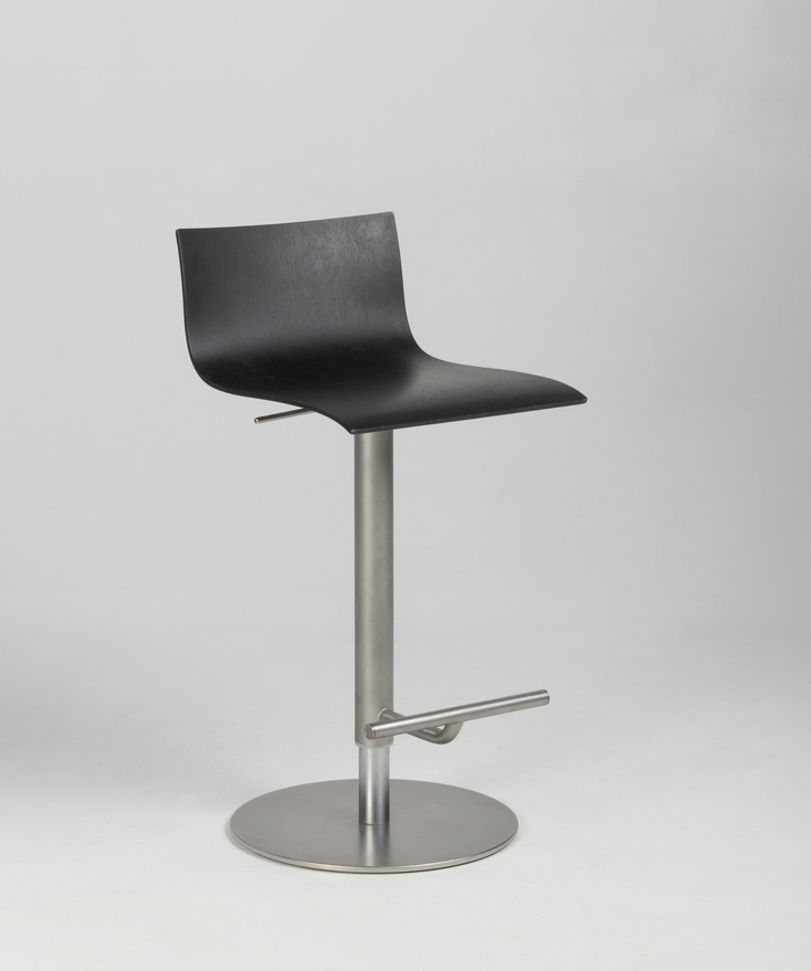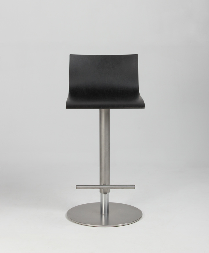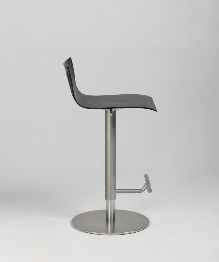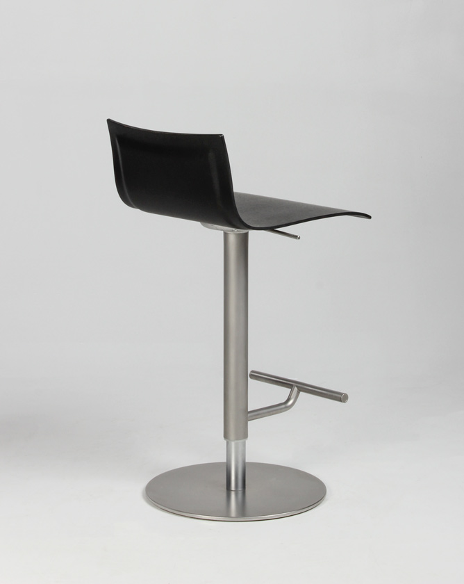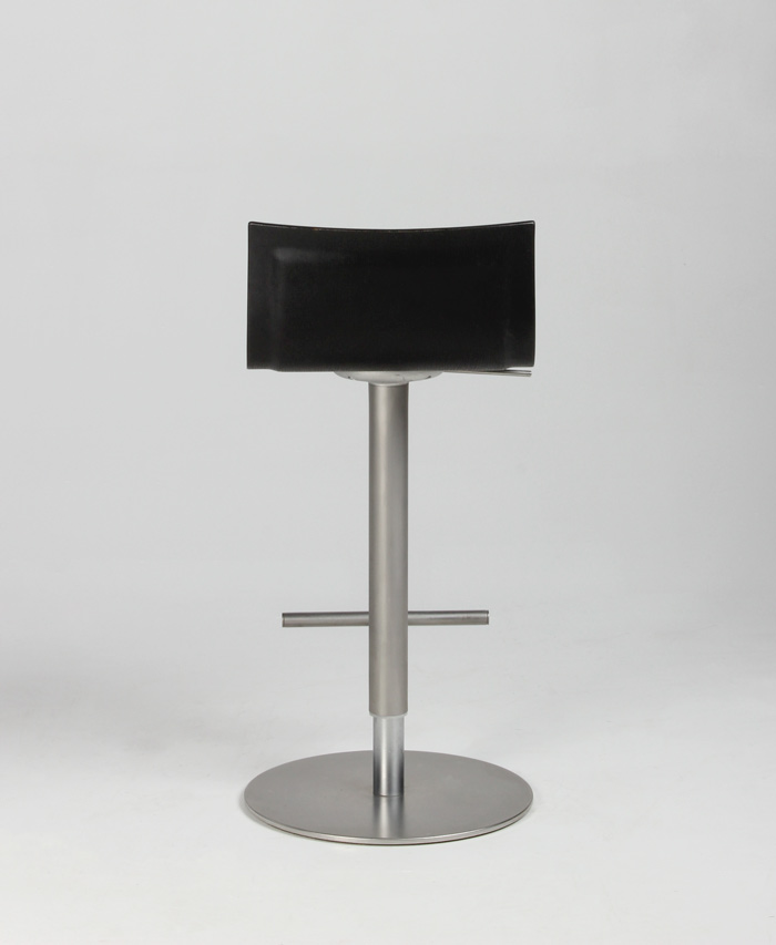 Stolen har stel og fod i satinbørstet stål samt gaslift, så siddehøjden kan reguleres fra 52-77 cm.
