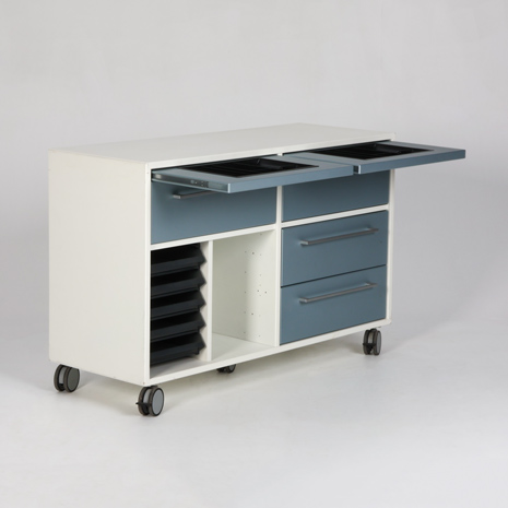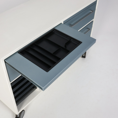 Modulet har brevbakker, åbent rum til fx. ringbind samt skuffer til diverse kontorartikler.
