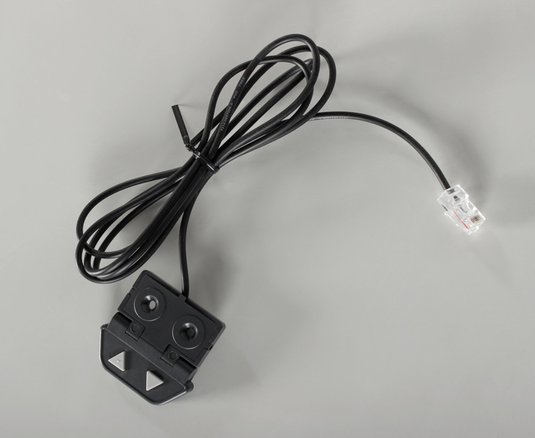 Betjeningsenheden har J45-stik og monteres med to skruer på undersiden af bordpladen.