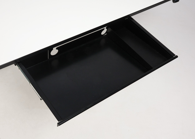 Linak hæve sænkebord med hvid laminatbordplade med udtræksskuffe til laptop inkl. nøgle.