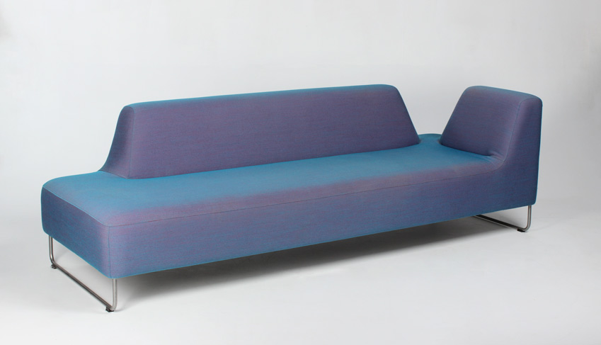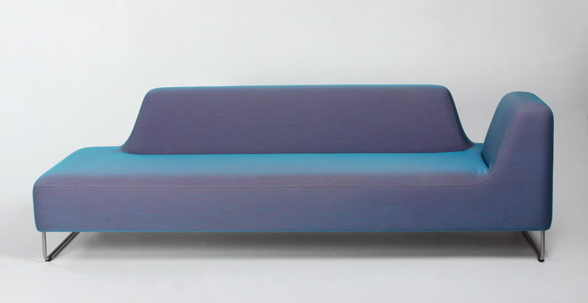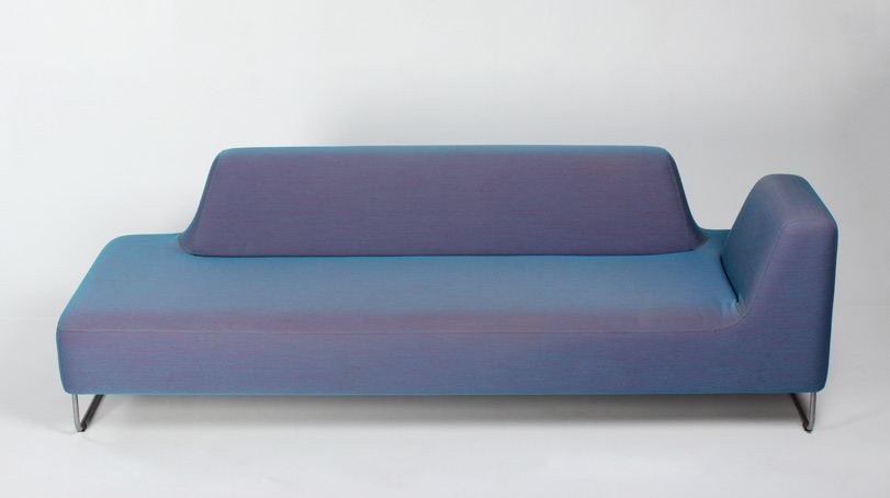"Flot loungesofa model UGO 302 fra norske LK Hjelle. Sofaen har en fast polstring, og den unikke sammensætning af farverne i betrækket, changere til en metallic-lignende nuance alt efter belysningen omkring.