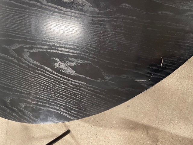 Bemærk! Overflade og kant fremstår flere steder med brugsspor og afskalninger.