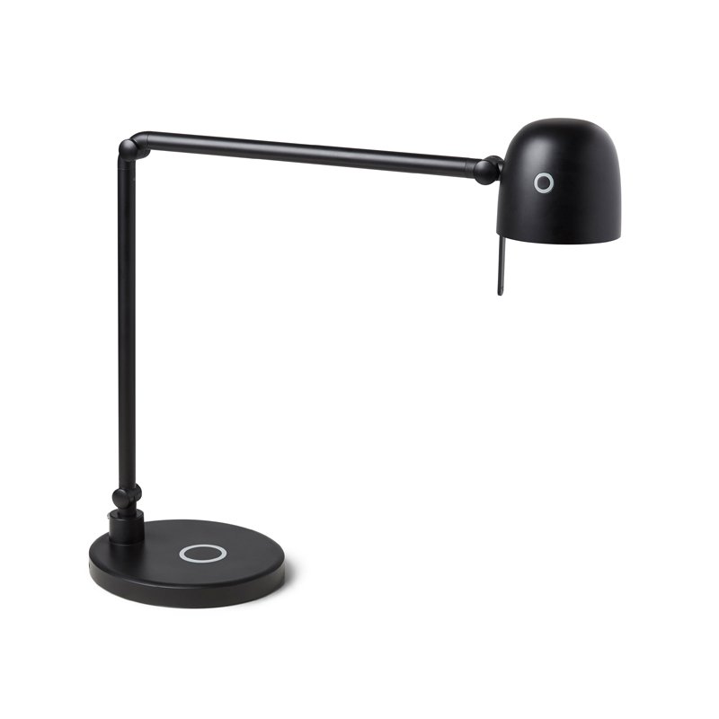 "Skrivebordslampe i retro look i modellen NEOS X fra Matting. Lampen har mange smarte funktioner så som Qi-oplader, der gør det muligt at oplade sin mobiltelefon trådløst.
