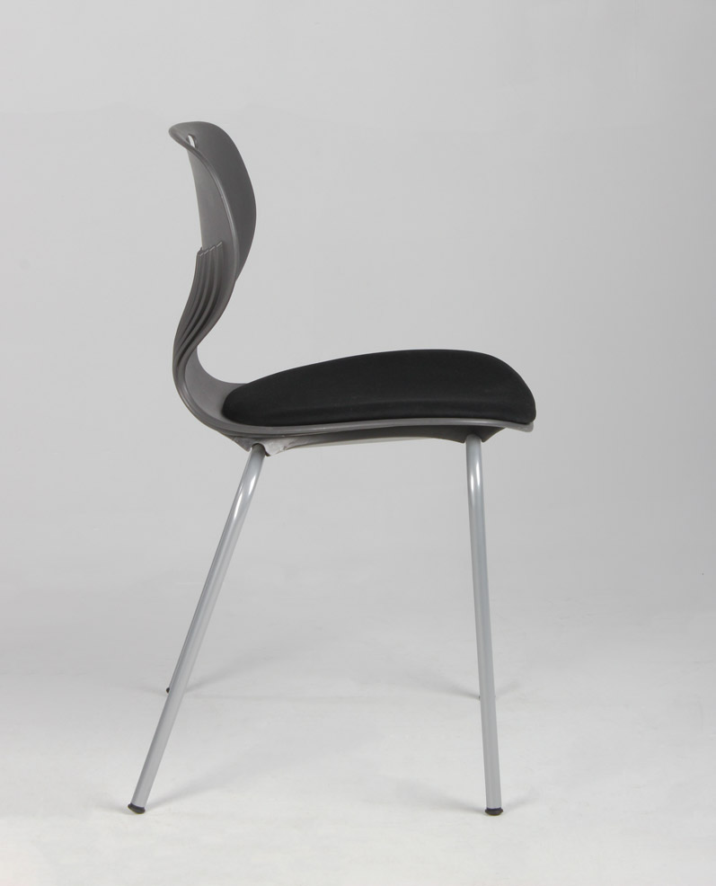 "Merryfair stabelstol i formstøbt grå plast med sort sædepolstring og mat gråt stel.