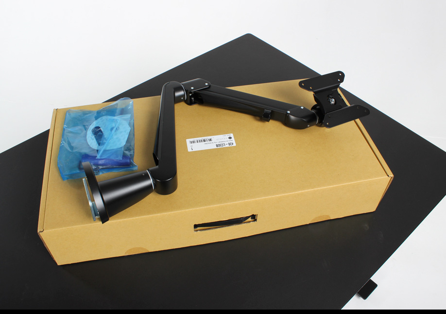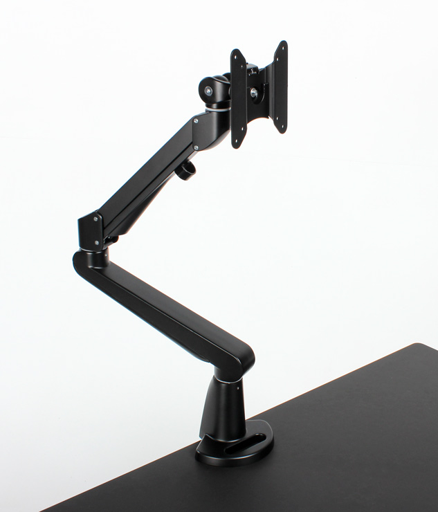 "Sort monitorarm til en skærm, fleksibel arm med gasfjederløft.