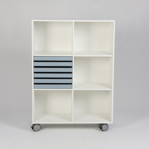 Reolen har god opbevaringsplads og indrettet med åbne hylder og brevbakke-skuffer.